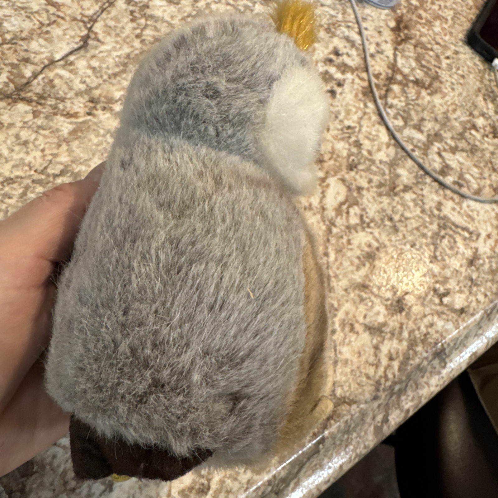 Steiff Owl Wiggi Plush Stuffed Germany Silver Button Vintage Grey Spotted