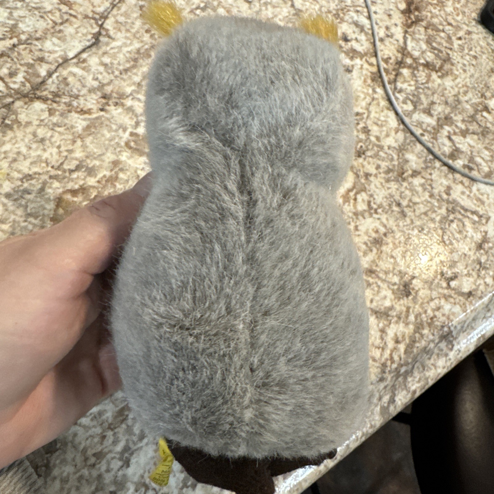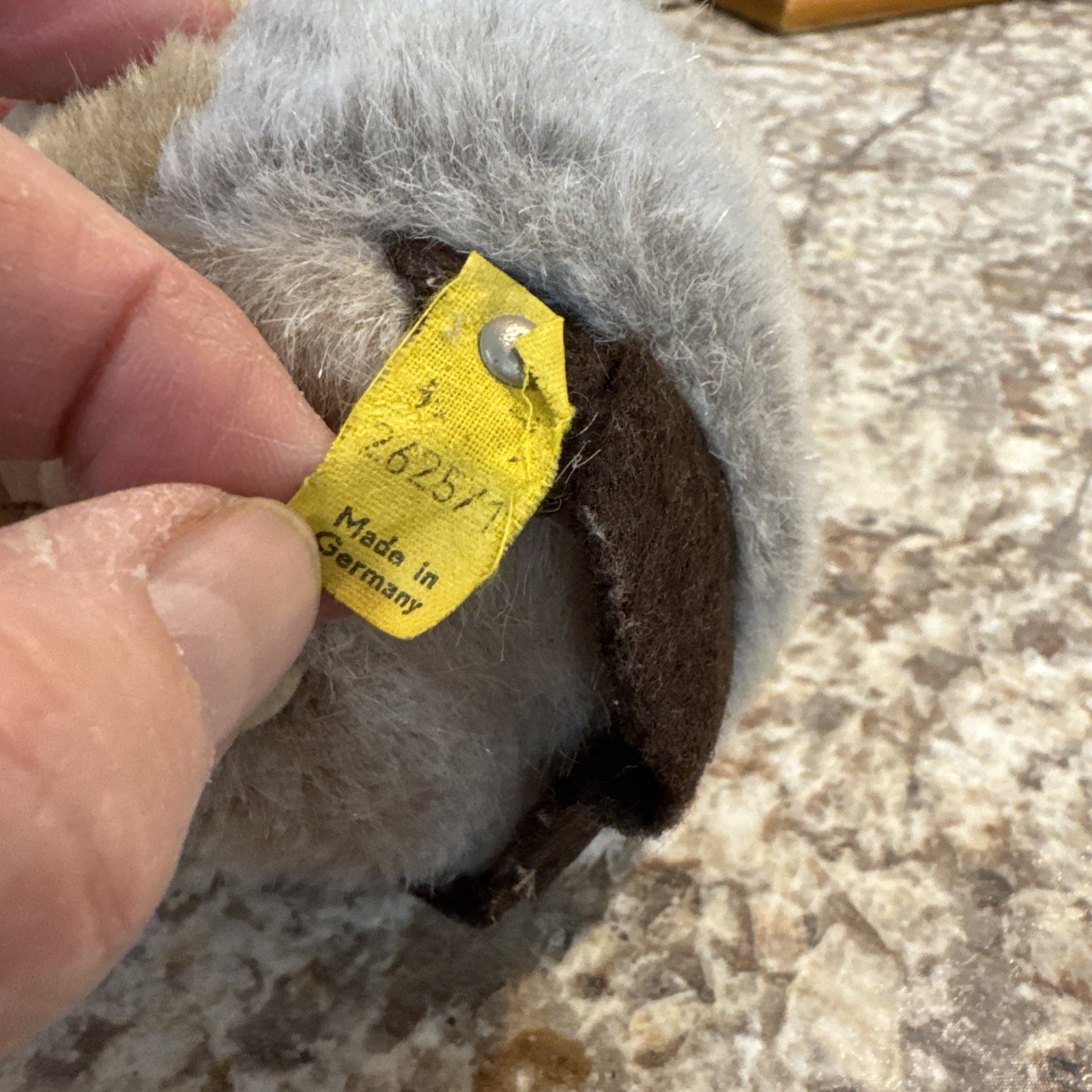 как выглядит Steiff Owl Wiggi Plush Stuffed Germany Silver Button Vintage Grey Spotted фото