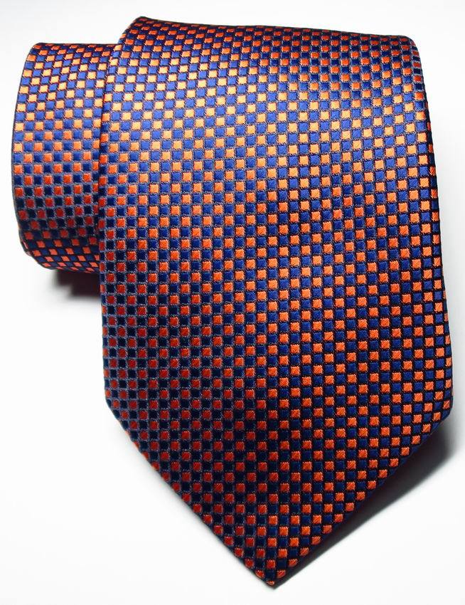 New Classic Checks Orange Dark Blue JACQUARD WOVEN 100 Silk Men's Tie Necktie