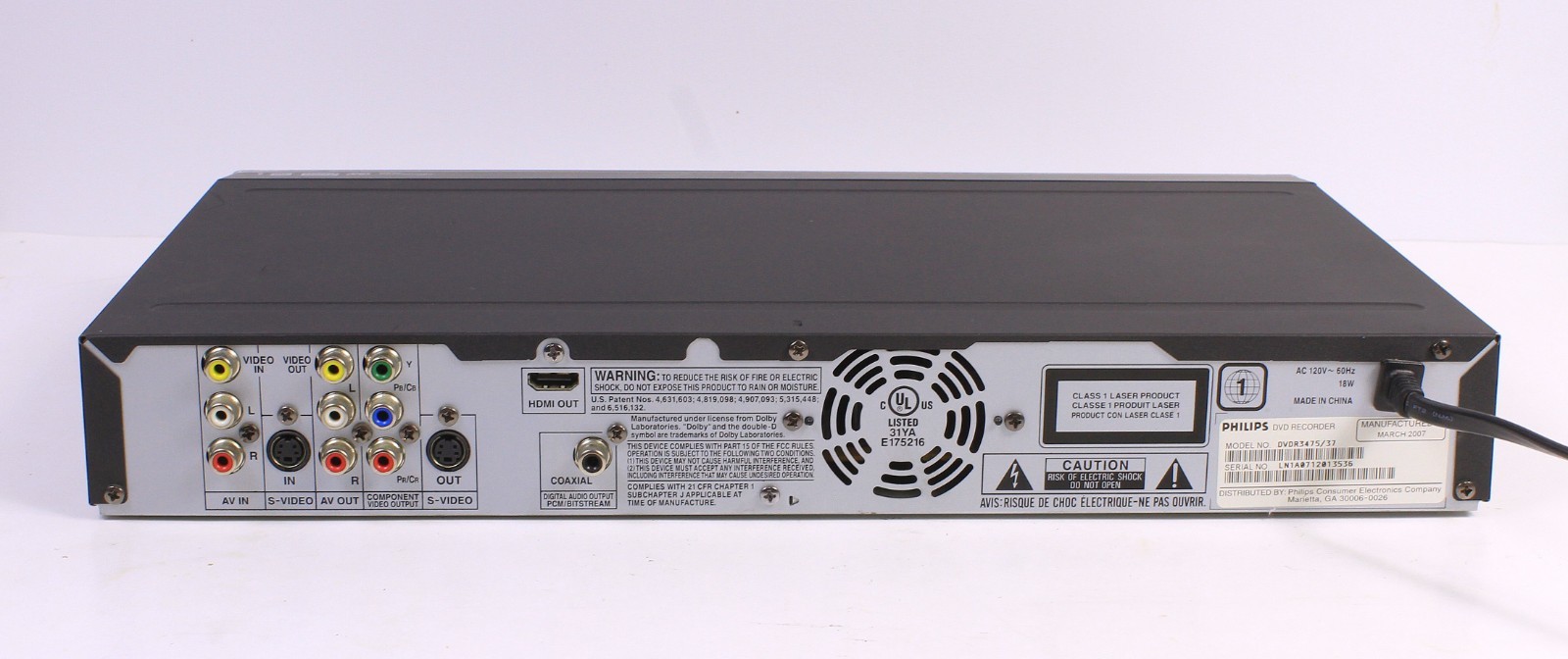 Philips DVDR-3475 DVD Recorder Player HDMI Firewire Very Clean Tested No Remote