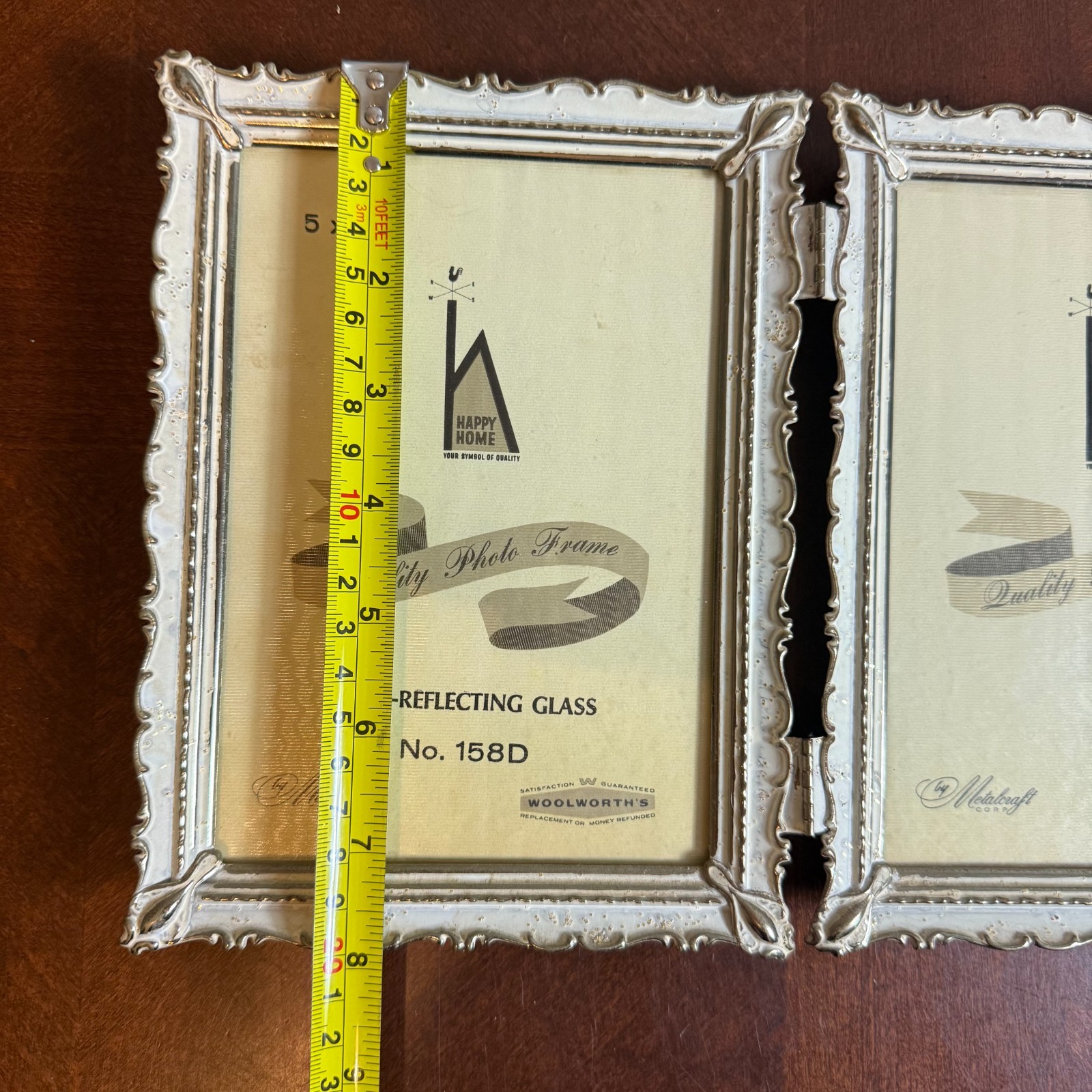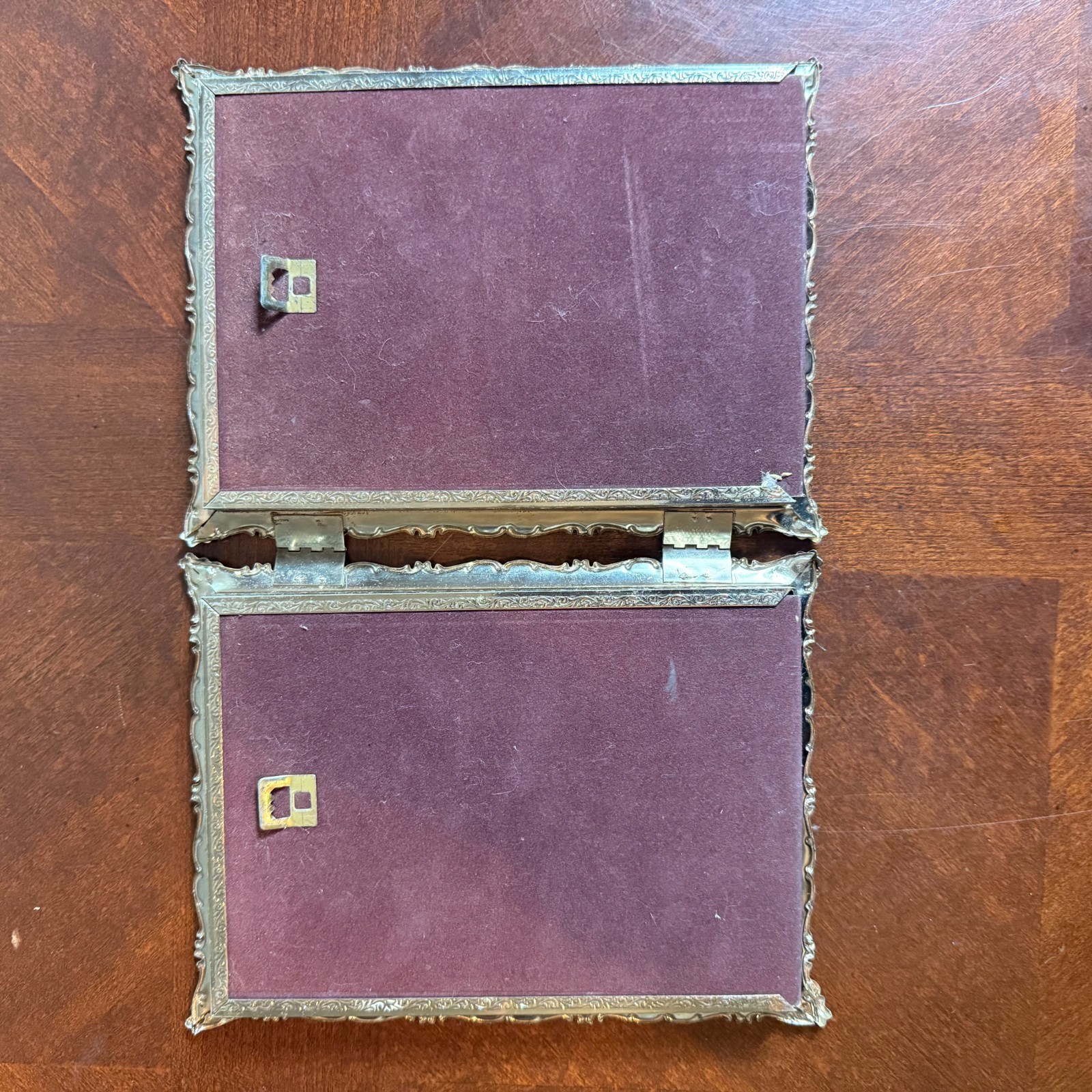 как выглядит VTG 1950s White Gold Metal Double 5" x 7" Hinged Picture Photo Frame Ornate фото