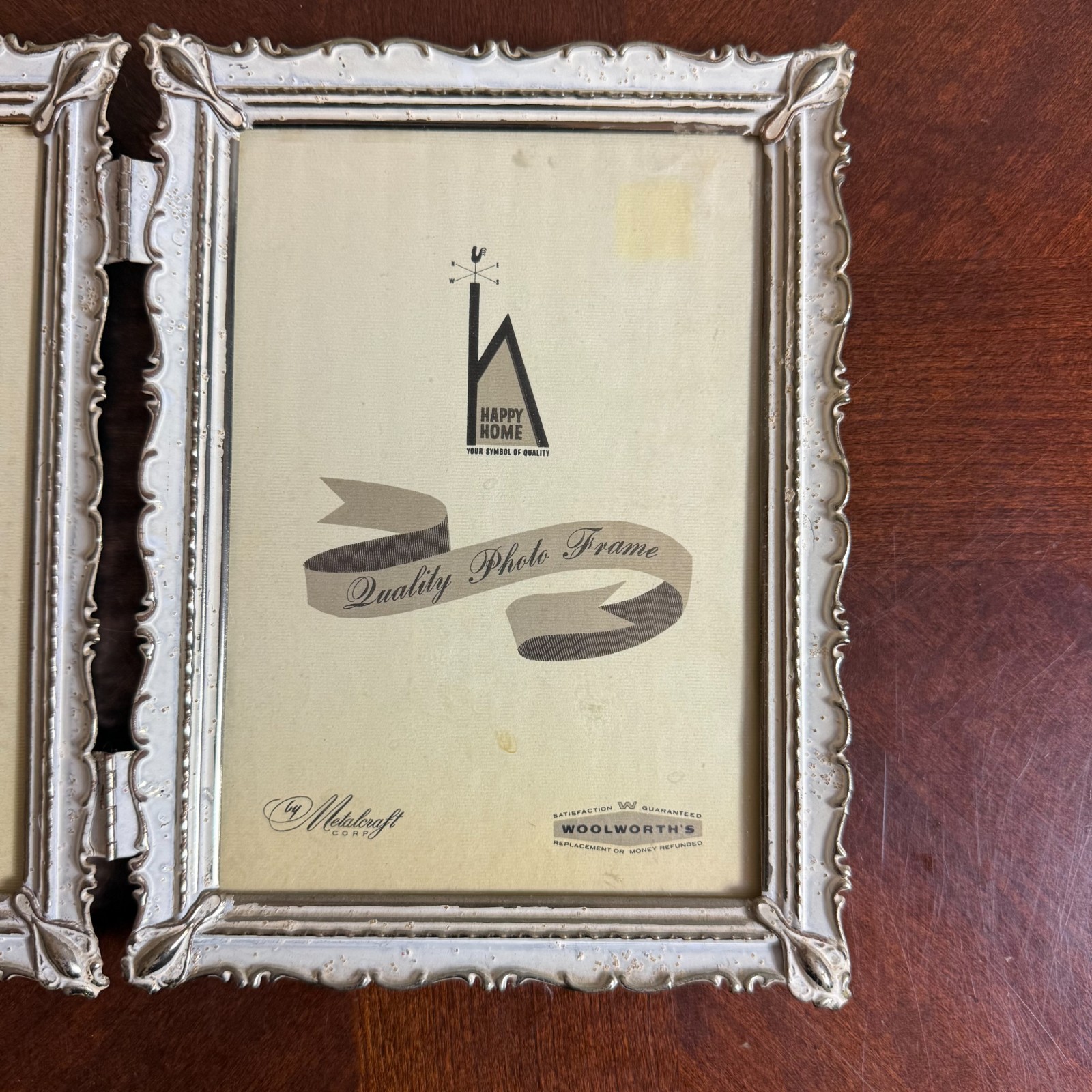 VTG 1950's White Gold Metal Double 5 x 7 Hinged Picture Photo Frame Ornate