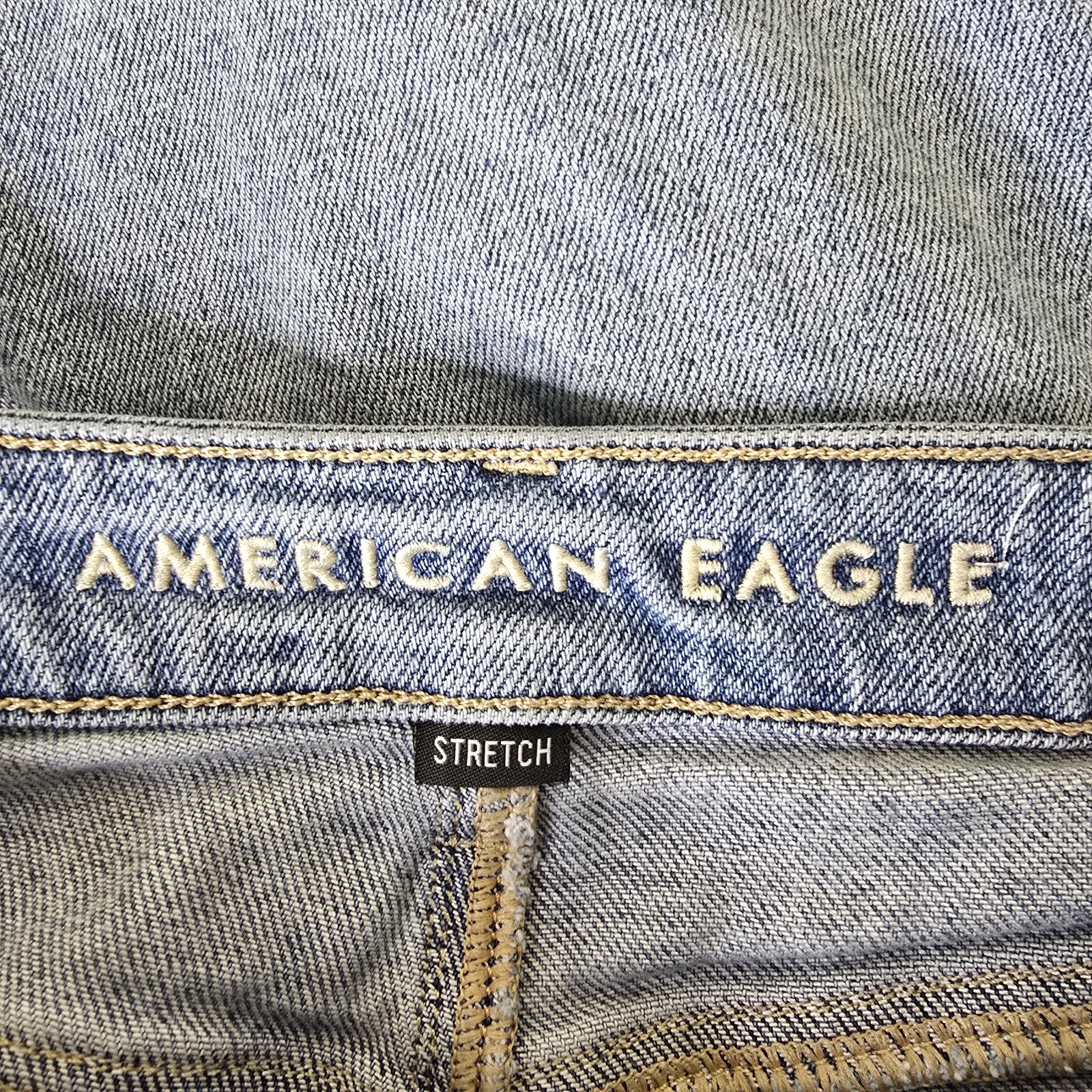 American Eagle Jeans Women 00 Short Light Blue Whiskered Denim Wash Mom Straight