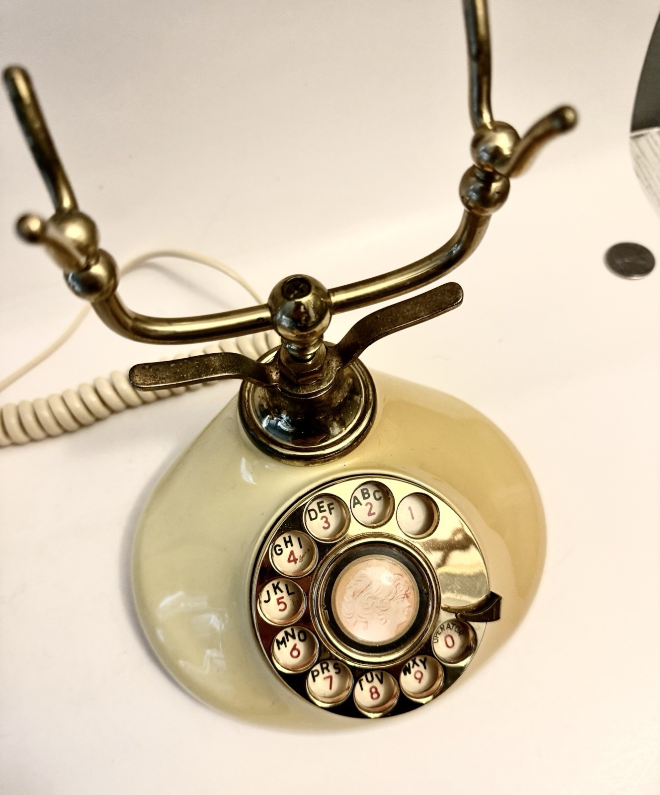 как выглядит Vintage 1970s Empress Cameo French Style Rotary Telephone Original Cords Works фото