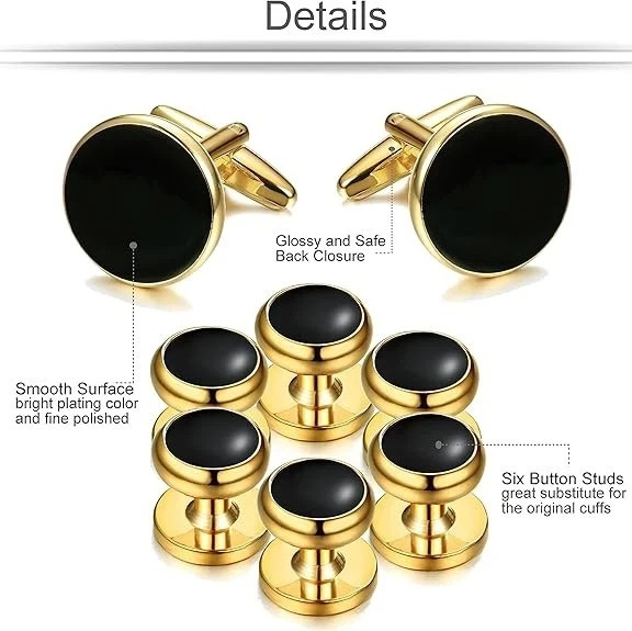 Cuff Links Mens Stainless Steel Cuff Links and Studs Set Gold Black Cufflinks fo