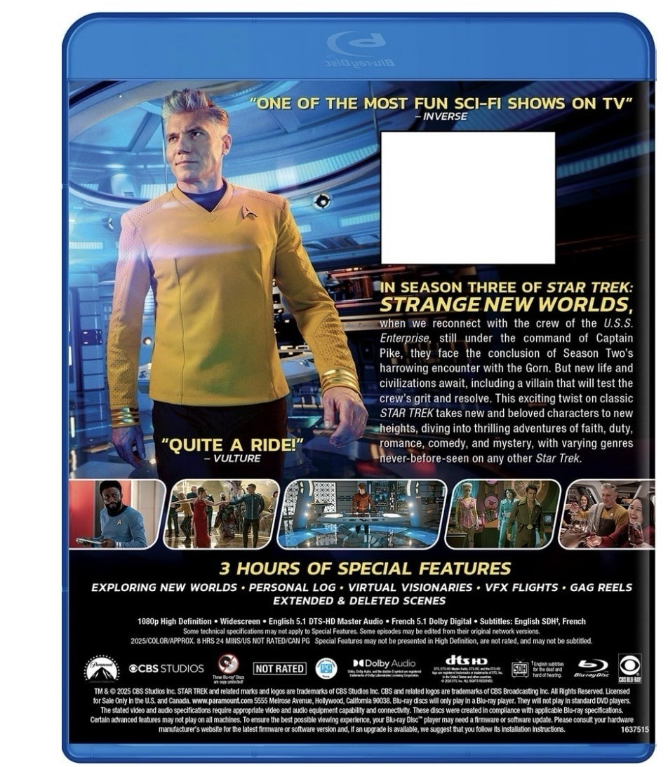 Star Trek: Strange New Worlds - Season 3 Blu-ray Disc Slipcover Presale 3-3-26