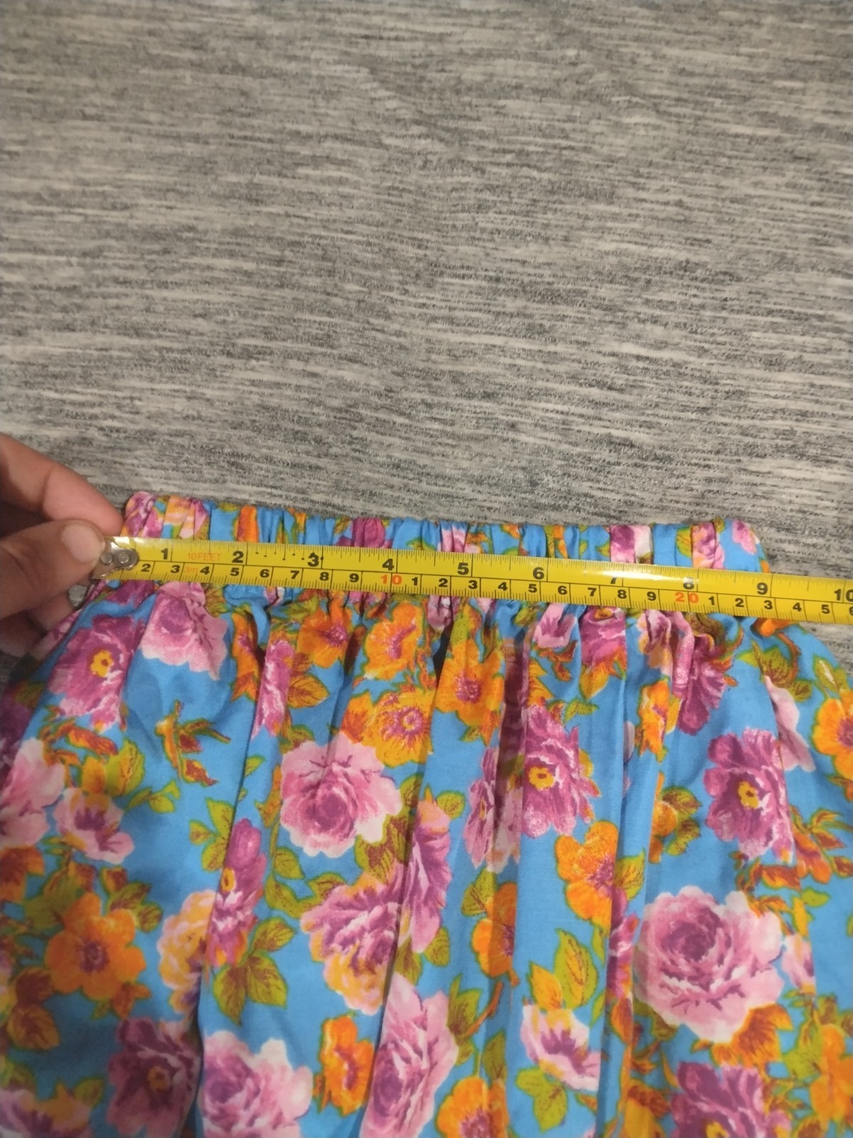 Girl's Floral Blue Skirt: 9 Elastic Waist