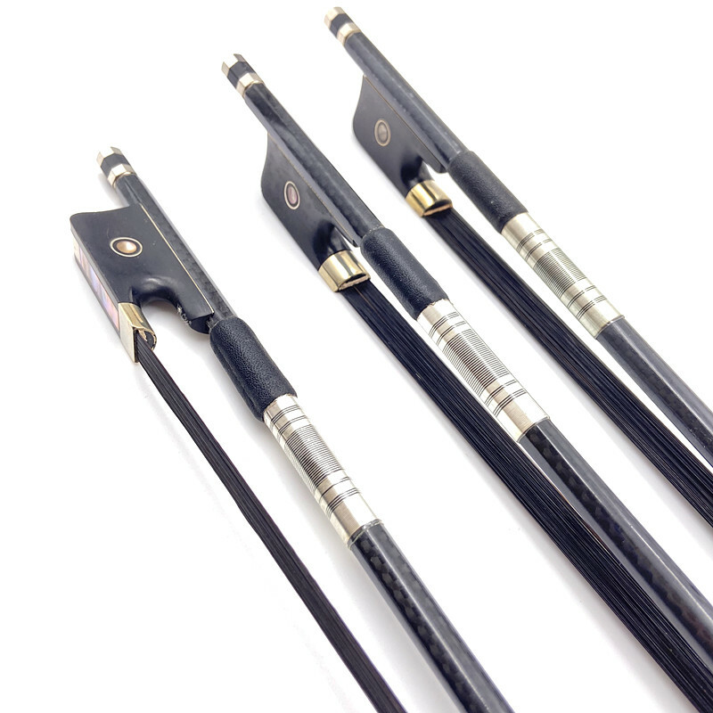 как выглядит 3pcs black hair viola bow, plaid black Carbon fiber VIOLA bow,Copper Mounted фото