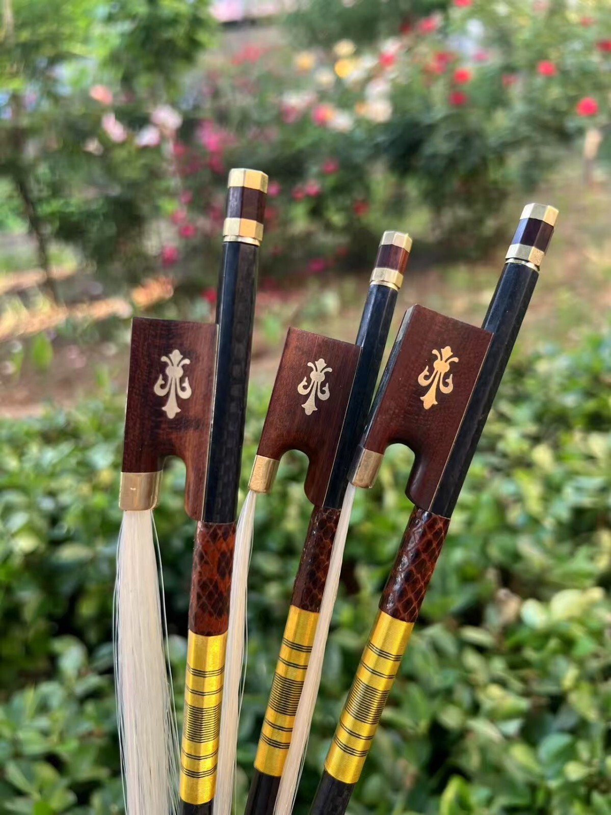 3pcs Violin Bow Carbon Fiber Snakewood Frog Natural Bow Hair Well balanced 4/4