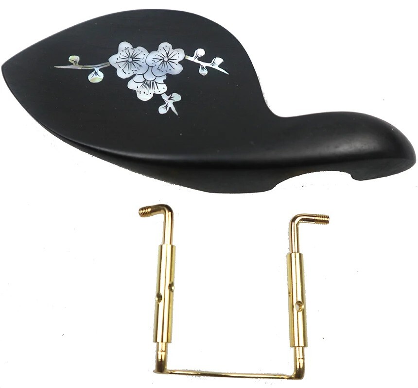 1pc 4/4 Violin Chin Rest/Bracket with Clamp Screw Ebony Wood Inlaid Pearl Shell