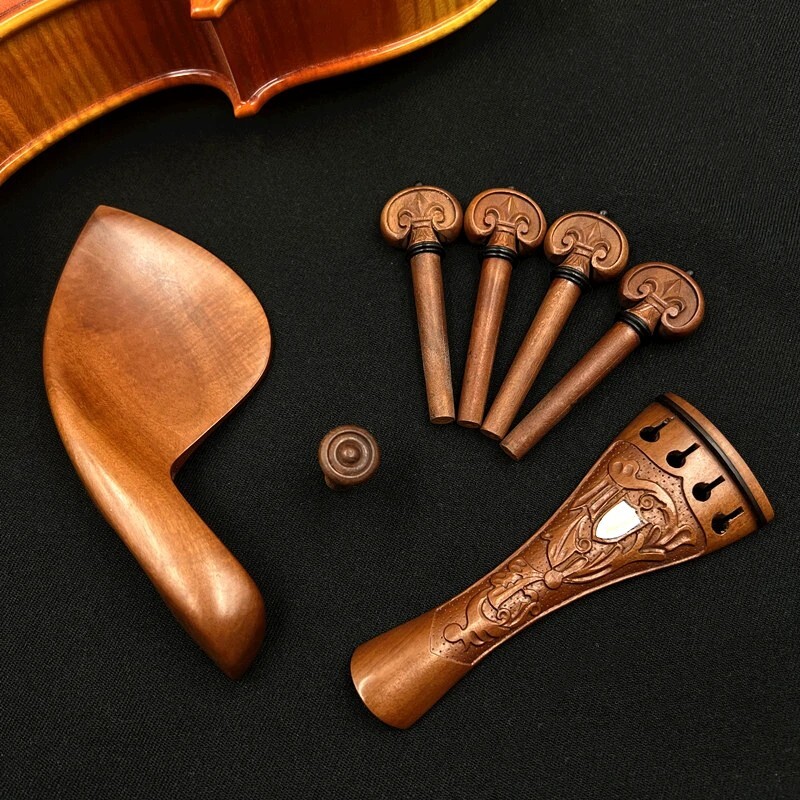как выглядит 4/4 jujube wood strings, chin rest, tail pin, professionally carved violin parts фото