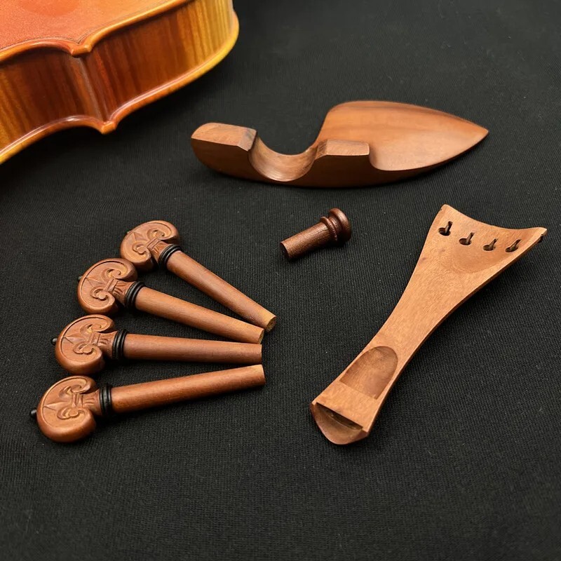 4/4 jujube wood strings, chin rest, tail pin, professionally carved violin parts