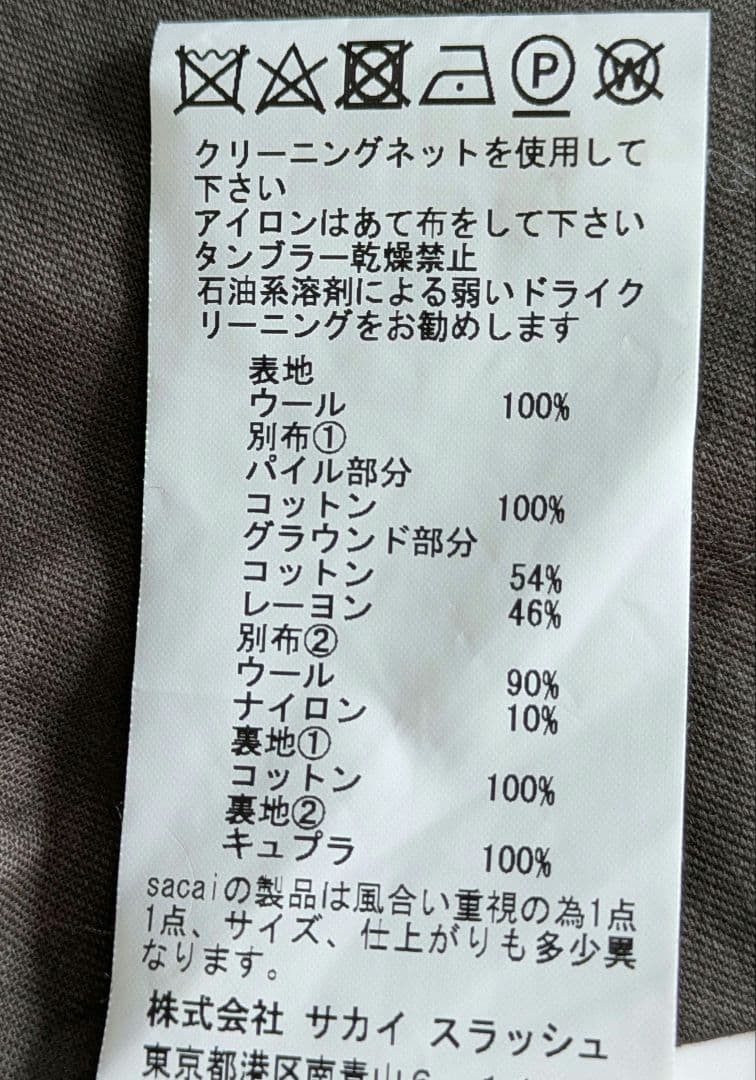 USED SACAI 17AW LONG COAT GOOD