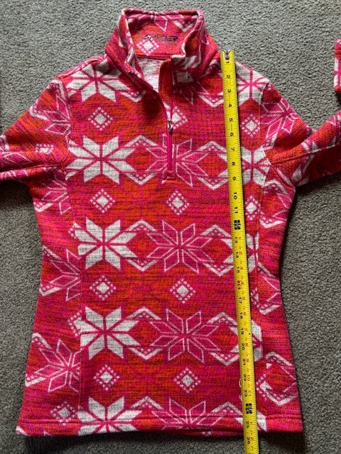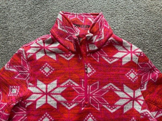 WOMENS SPYDER 1/4 ZIP SKI SWEATER RED, BRIGHT PINK, ORANGE, WHITE SNOWFLAKE 8 M