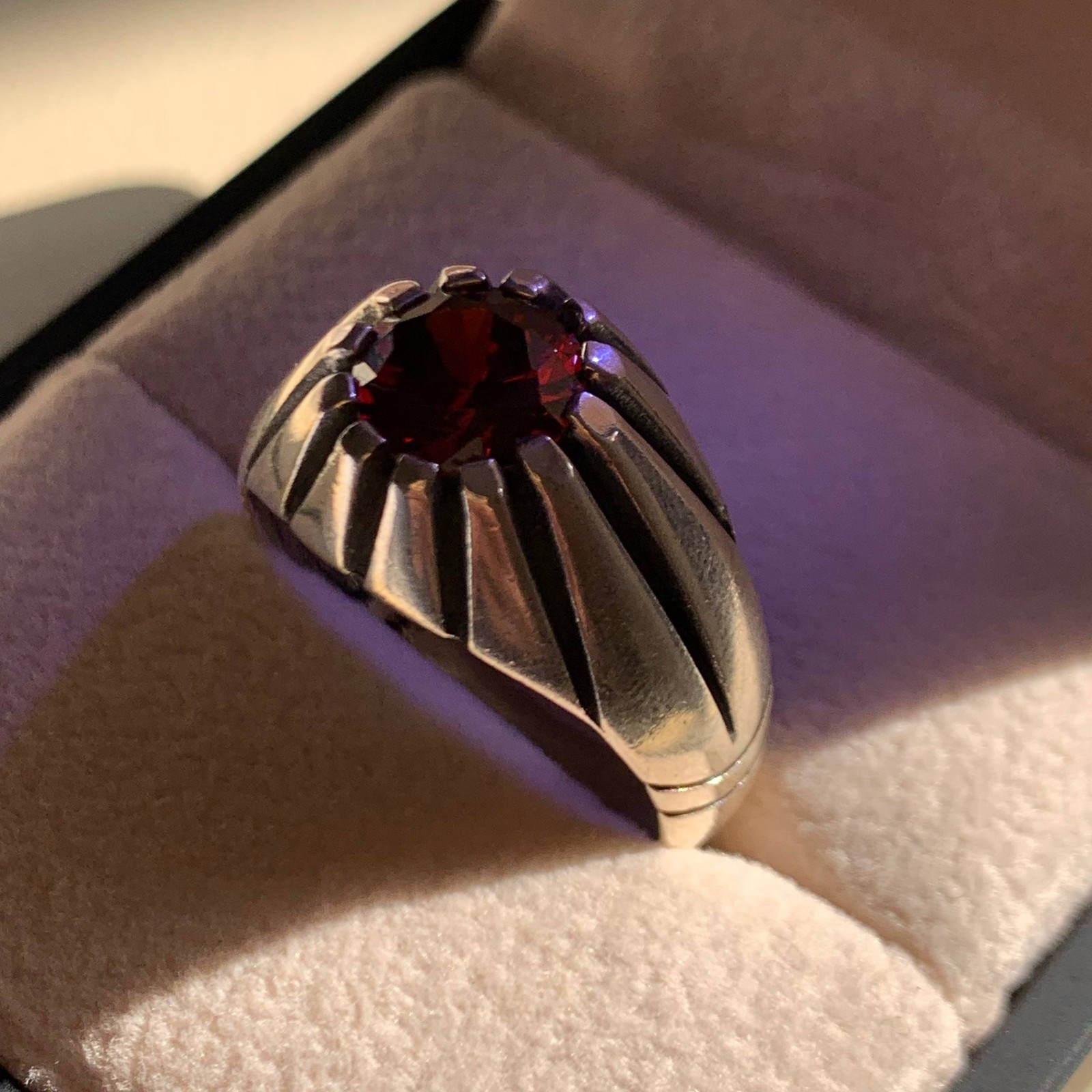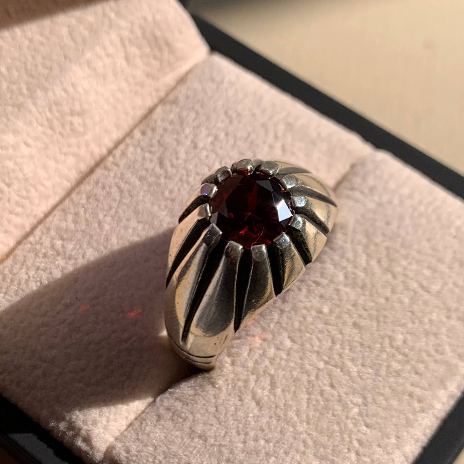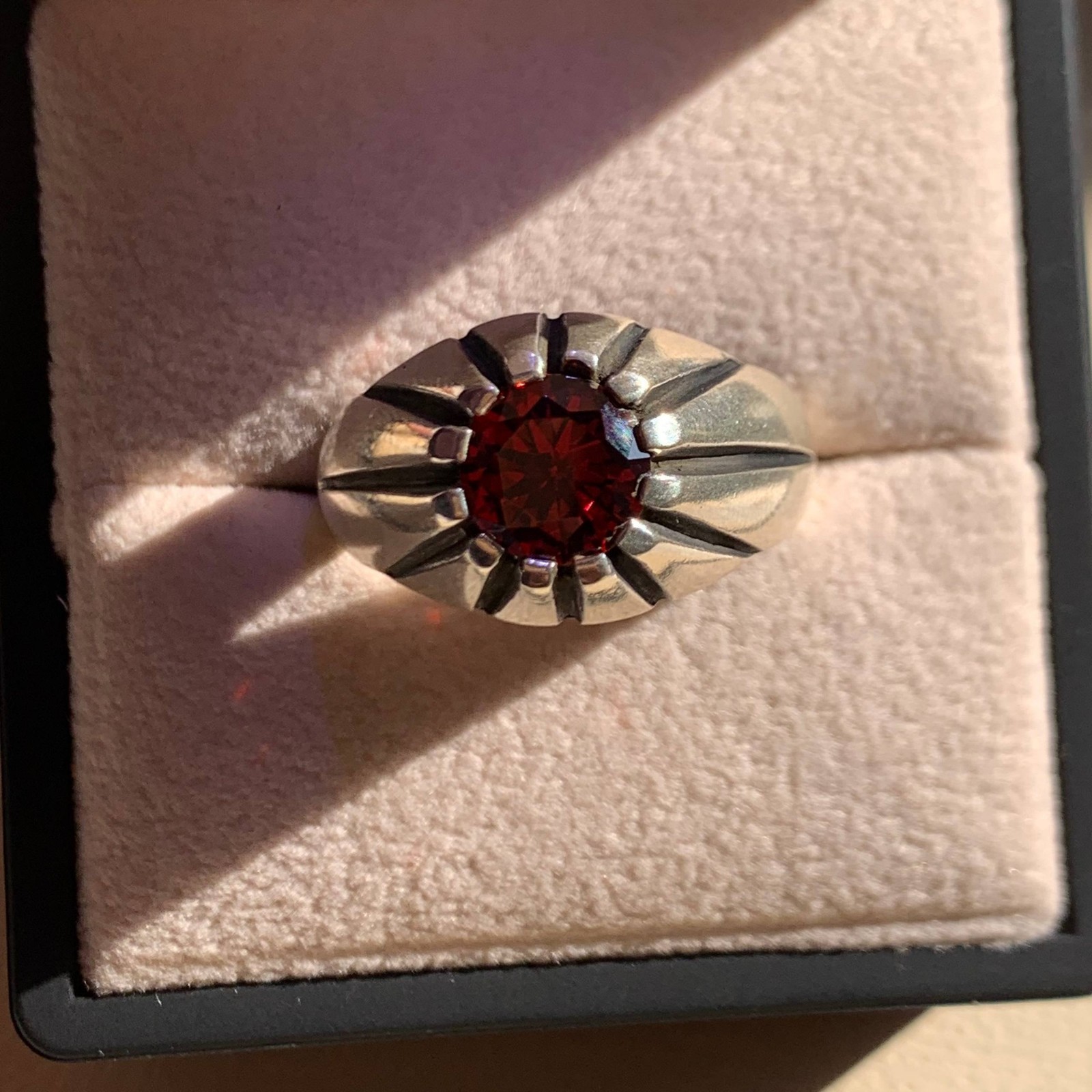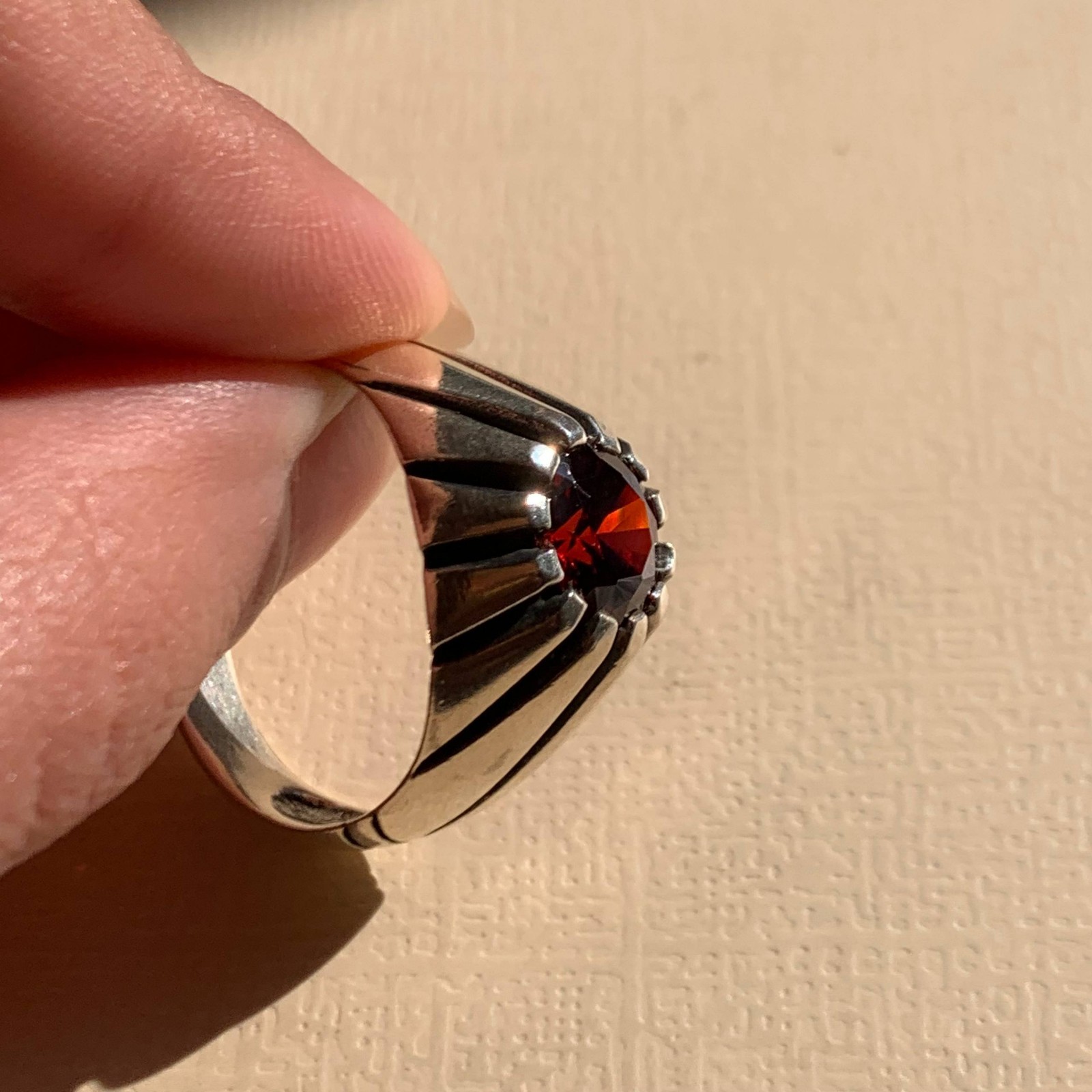 как выглядит Round Cut Turkish Red Garnet Sizable Handmade 925 Sterling Silver ring Men