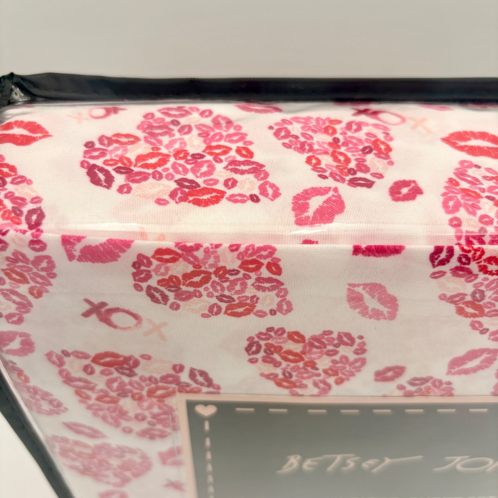 Betsey Johnson Queen 4 Piece Sheet Set Pink Red Hearts Lipstick Kisses XOXO