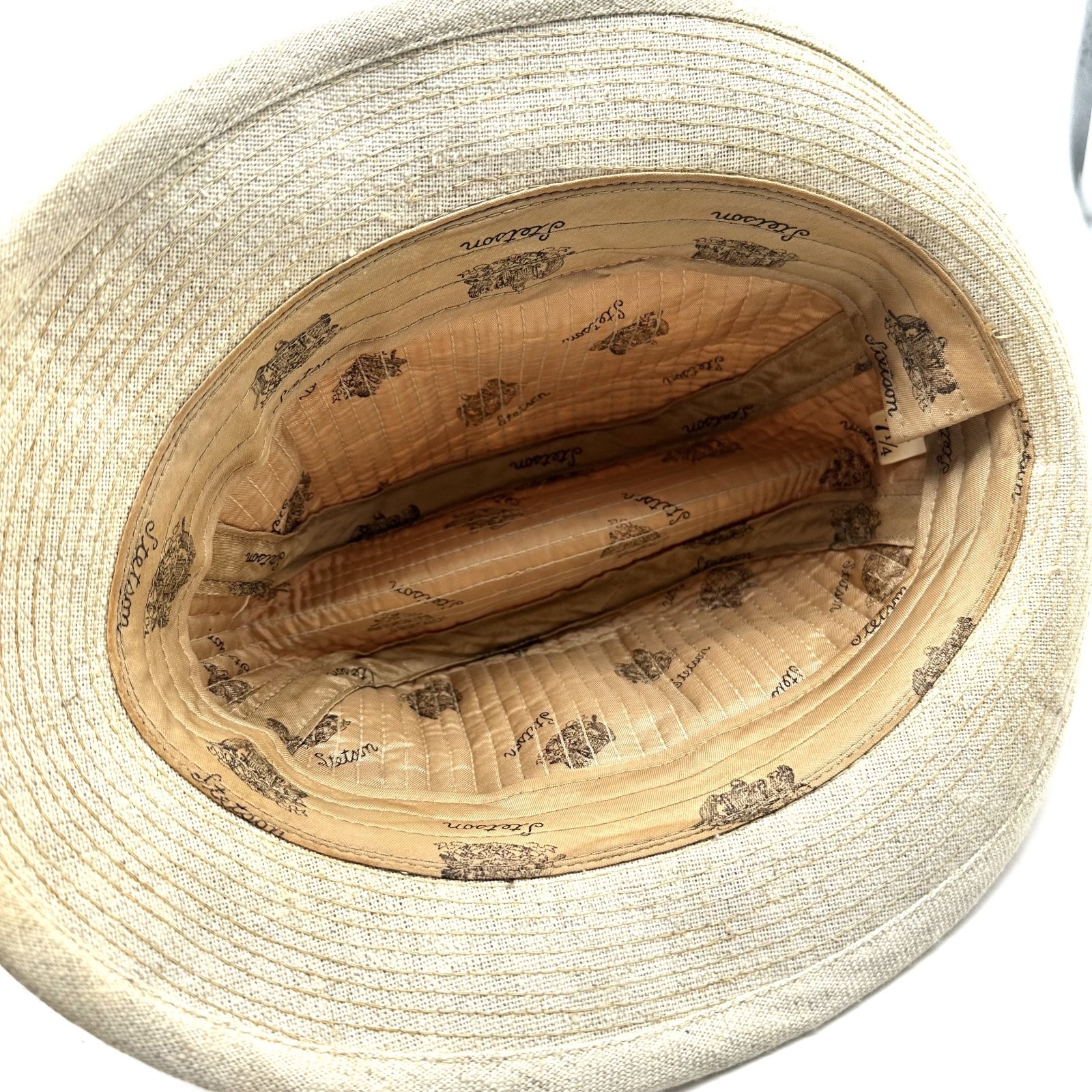 VINTAGE Stetson Fedora Brown Linen Look Tweed With Faux Buckle Size 7-1/4