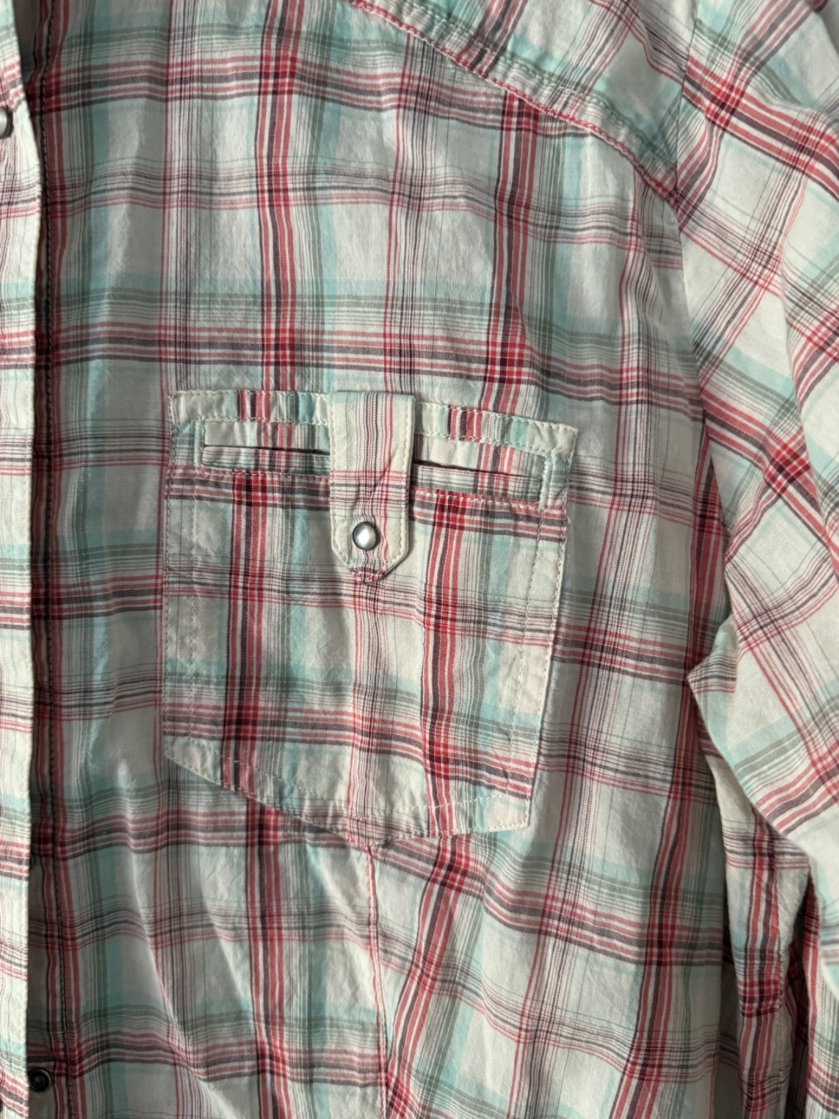 как выглядит Columbia Pearl Snap Shirt Large 100 cotton long sleeve plaid slightly fitted фото
