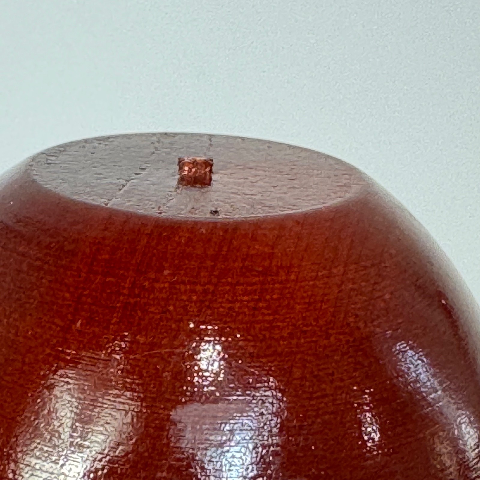 Vintage Turned Wooden Apple Solid Wood Accent Decor Red Brown Color Leather Stem