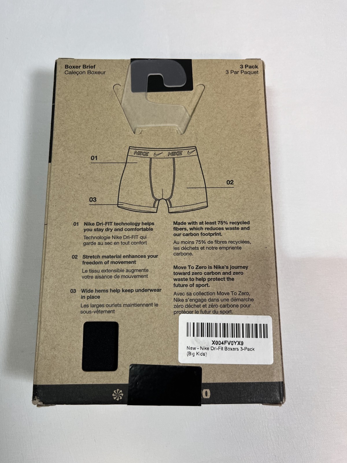 Nike Dri-Fit Essentials Micro Youth Boxer Brief 3 Pack Size Youth Boy MEDIUM