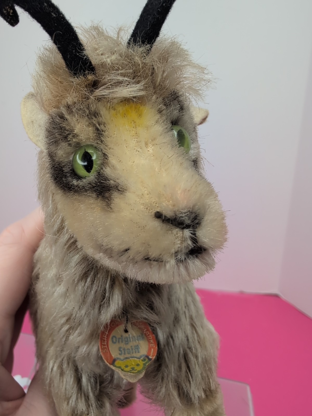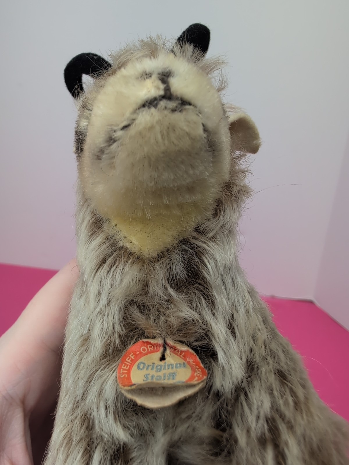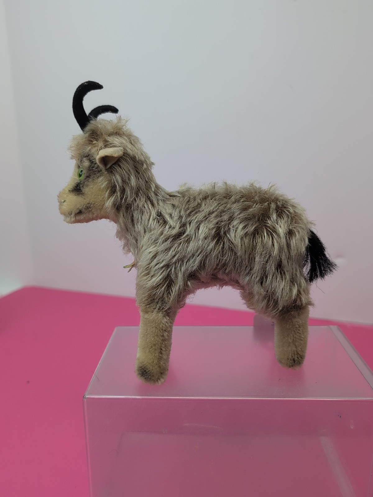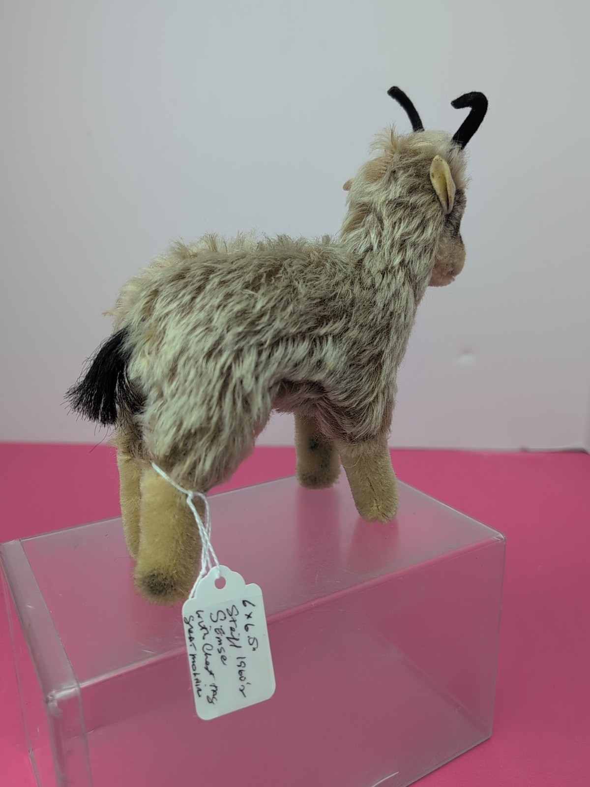 6x6.5 Vintage Steiff 1960's Semse Billy goat Germany Gray Mohair Chest Tag Si2