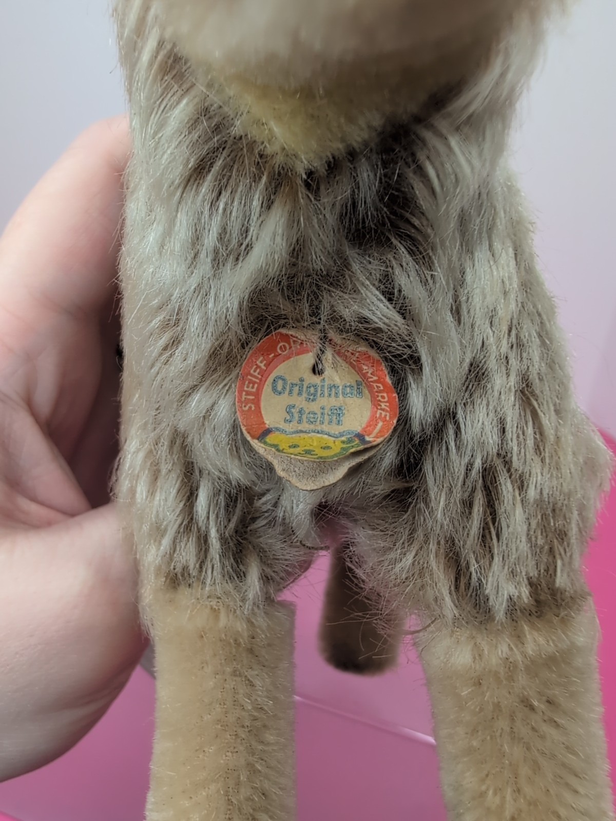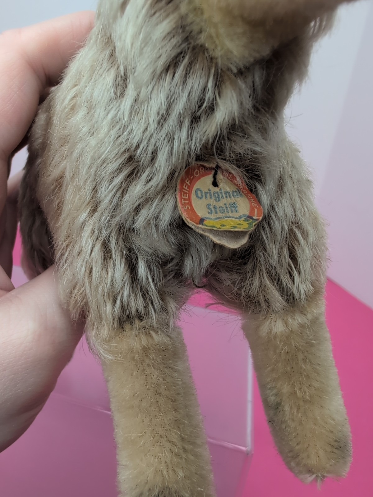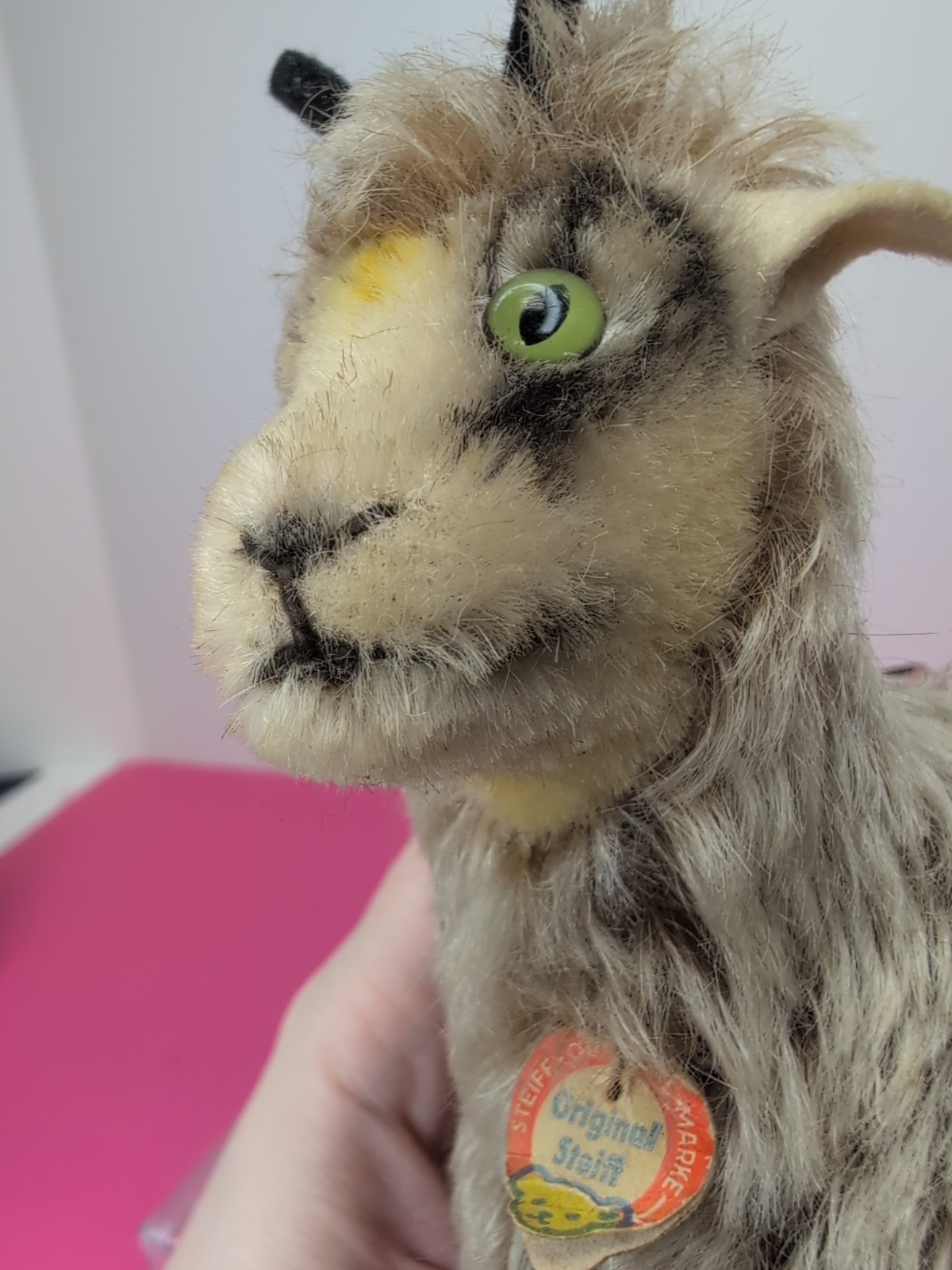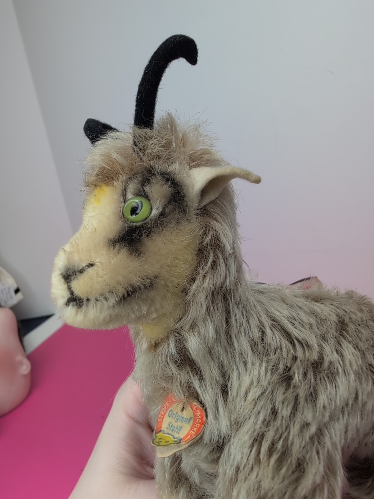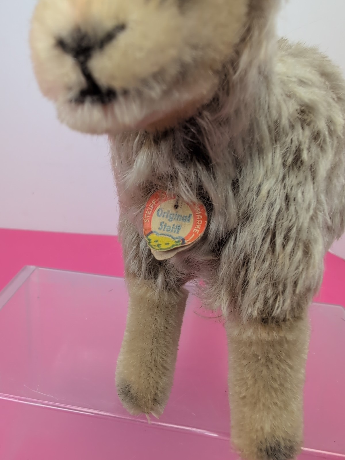 6x6.5 Vintage Steiff 1960's Semse Billy goat Germany Gray Mohair Chest Tag Si2