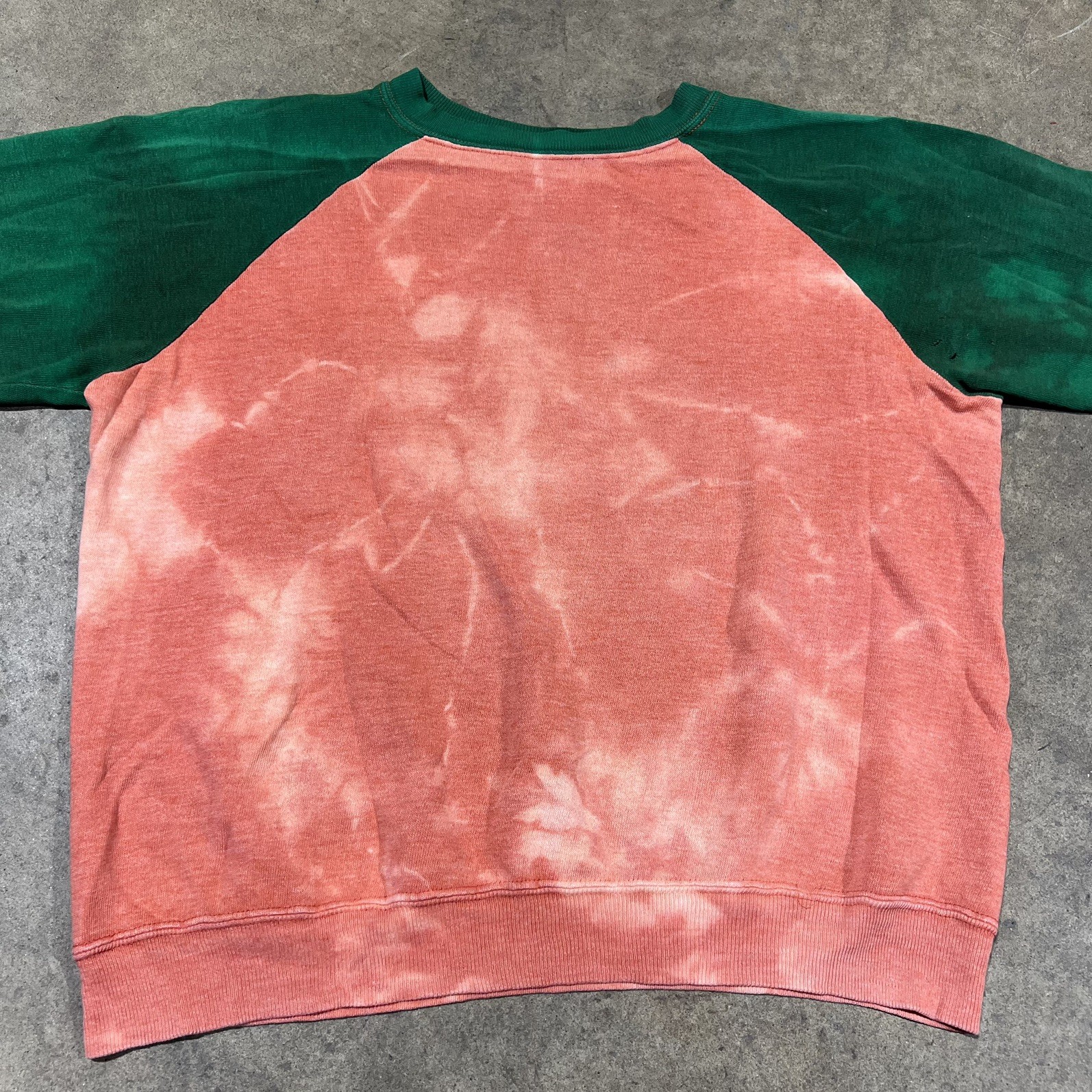 Vintage 1970s Sweatshirt Adult M Two Tone Green Raglan Made In USA 80s Thrashed