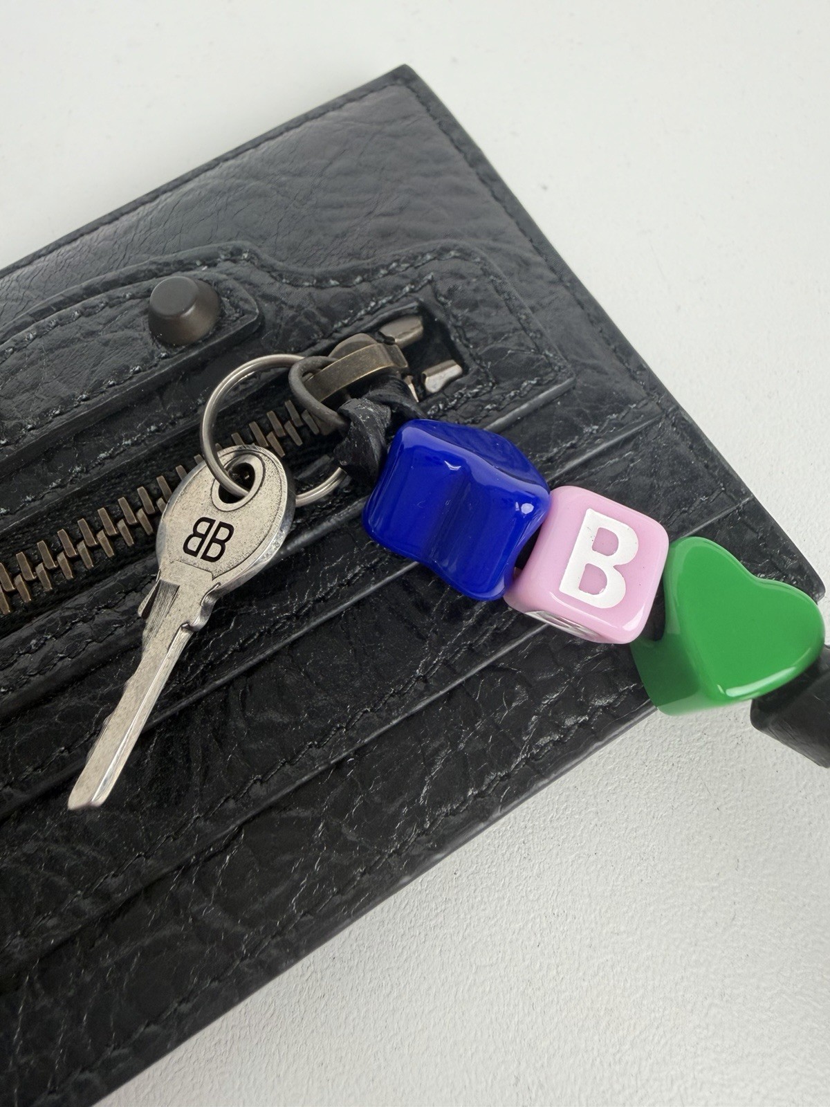 как выглядит Balenciaga Le City Card Holder in Black Arena Lambskin with Charms S-05 фото