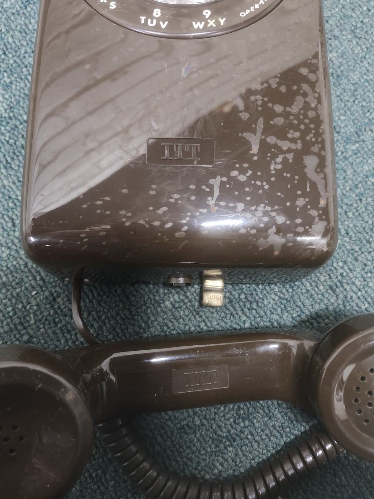 как выглядит Vintage Brown Rotary Dial Wall Telephone ITT Model 554 Not Tested фото