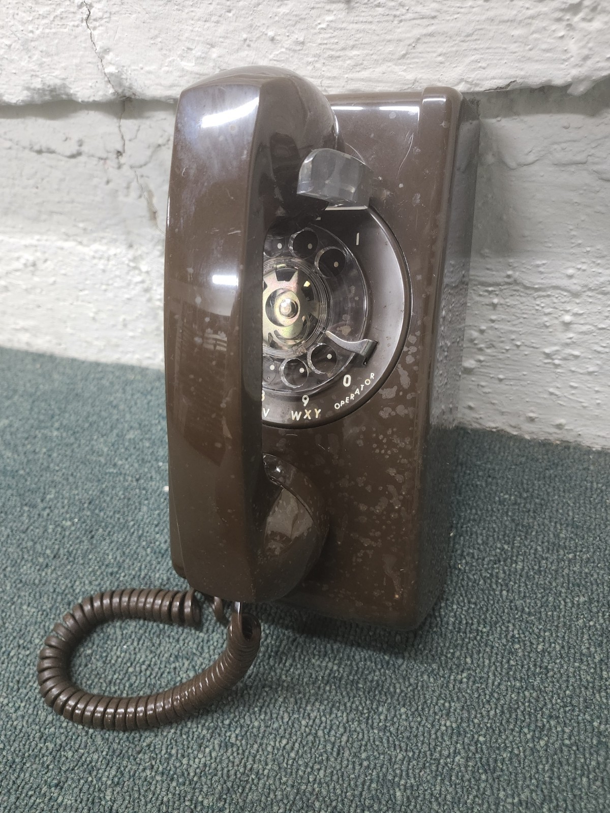 • Vintage Brown Rotary Dial Wall Telephone ITT Model 554 Not Tested