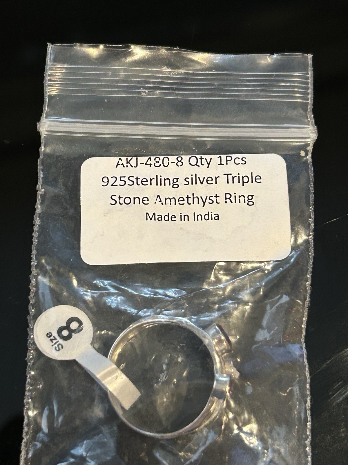 Sterling Silver 925 Amethyst Ring Size 8 - NEW