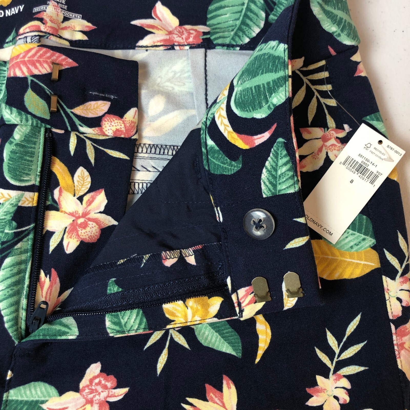 OLD NAVY Floral Stretch Twill Pants Sz 8 NWT High Rise Navy Blue Pixie Style