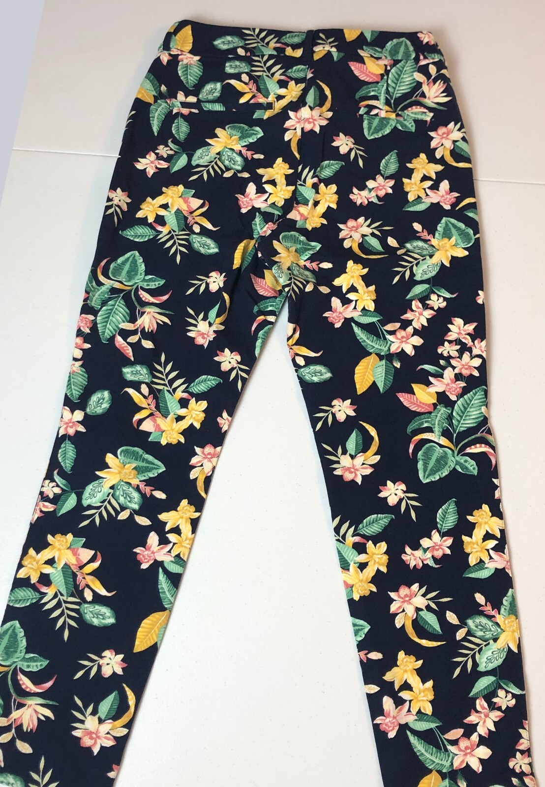 как выглядит OLD NAVY Floral Stretch Twill Pants Sz 8 NWT High Rise Navy Blue Pixie Style фото