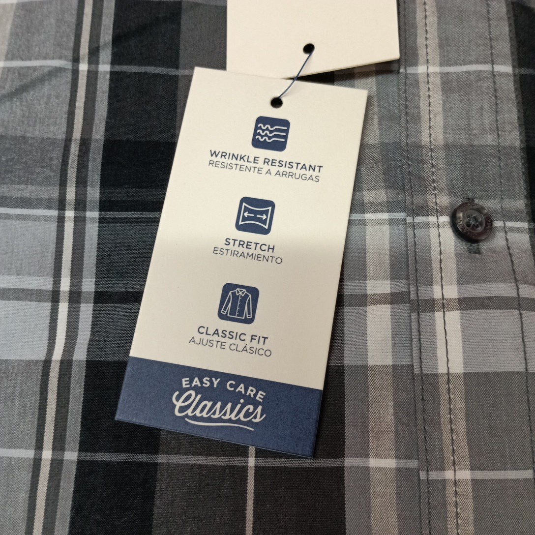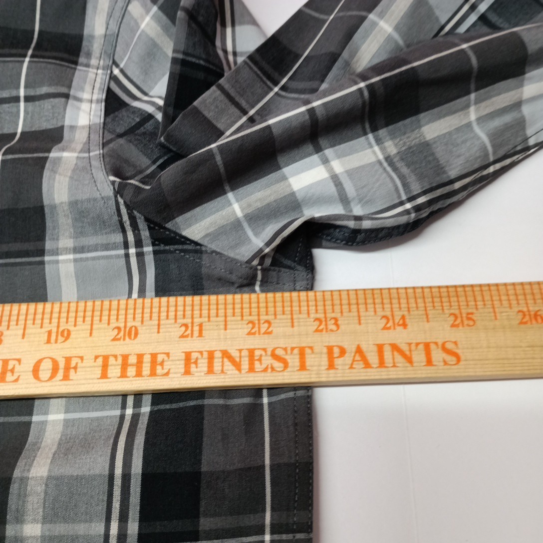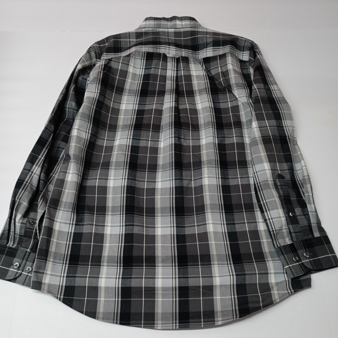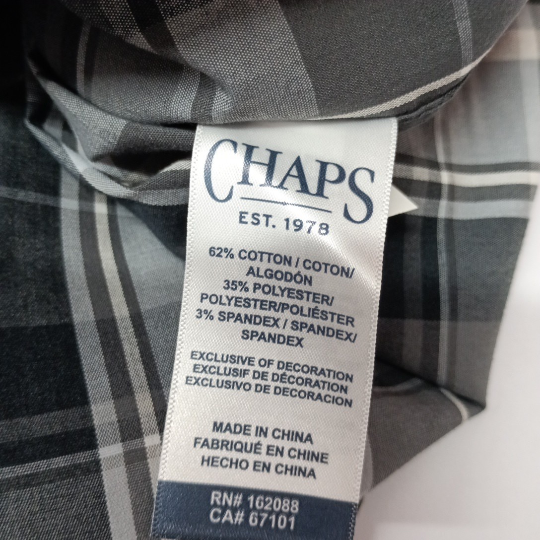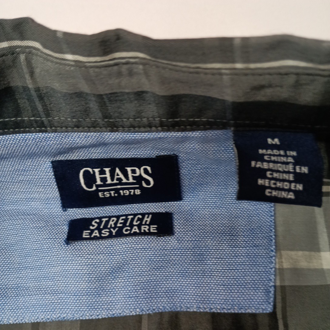 как выглядит Chaps Easy Care Woven Shirt Mens M Granite Gray Plaid Stretch Classic Fit фото