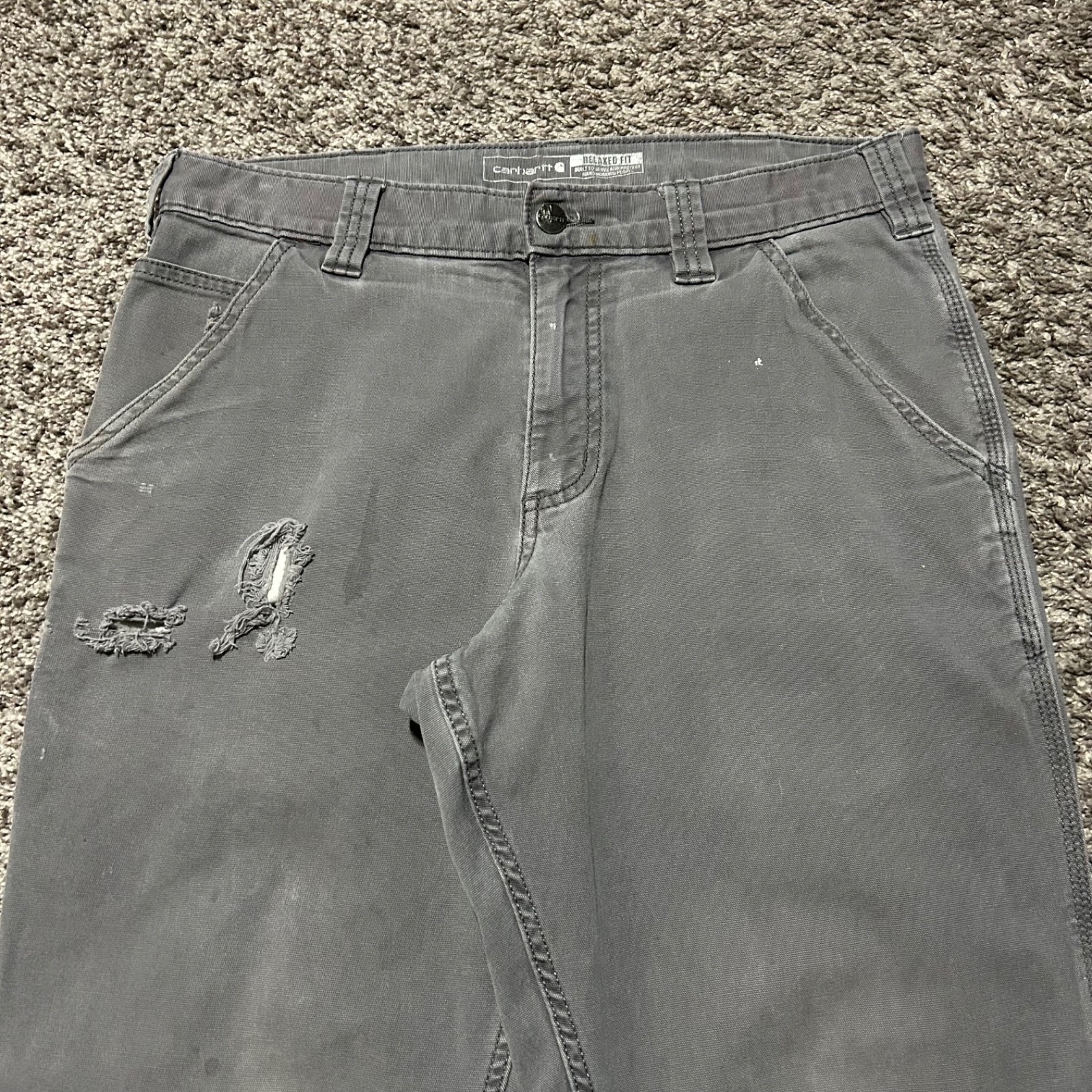 Thrashed Carhartt Pants Grunge Carpenter Work Pants y2k Gray 32x28