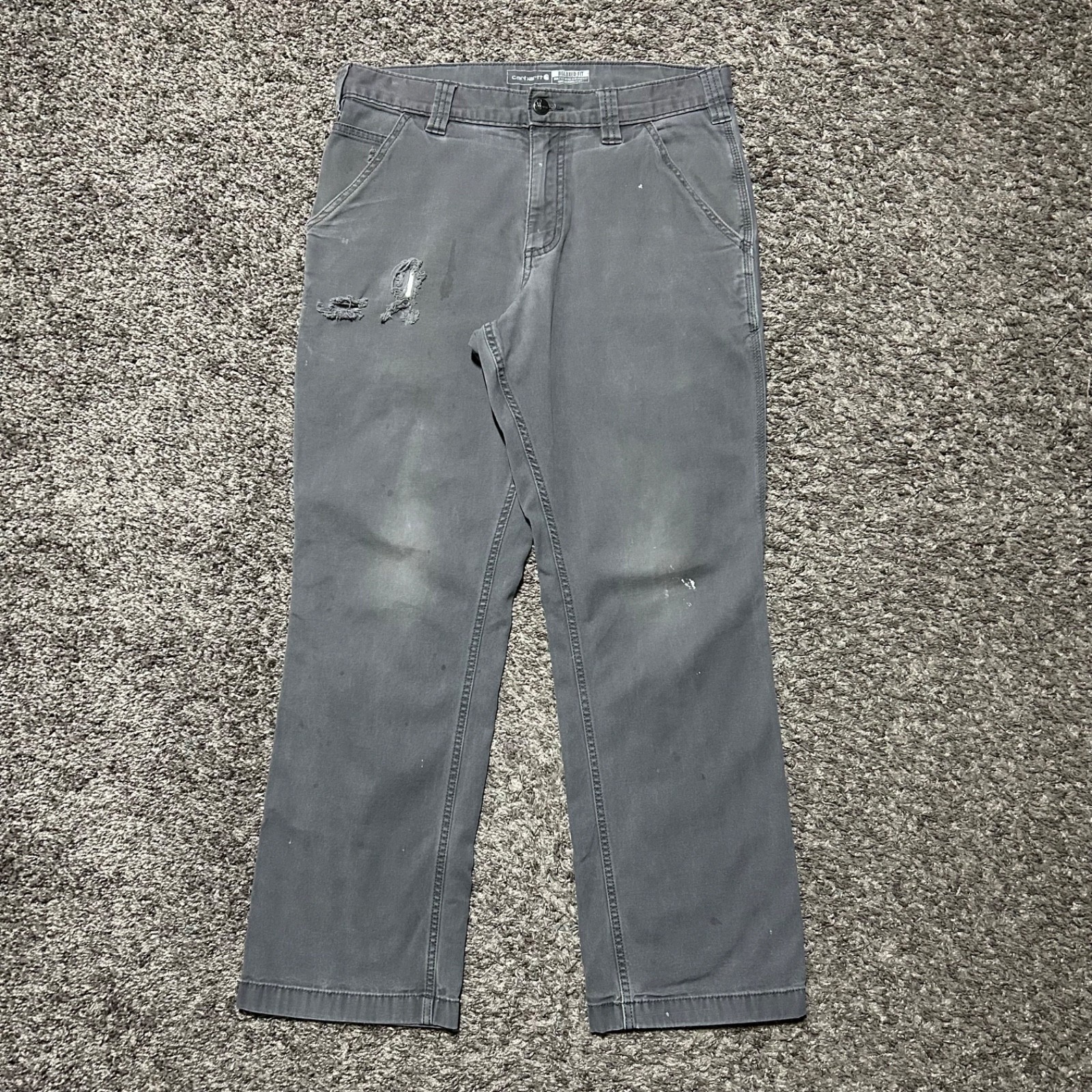 как выглядит Thrashed Carhartt Pants Grunge Carpenter Work Pants y2k Gray 32x28 фото