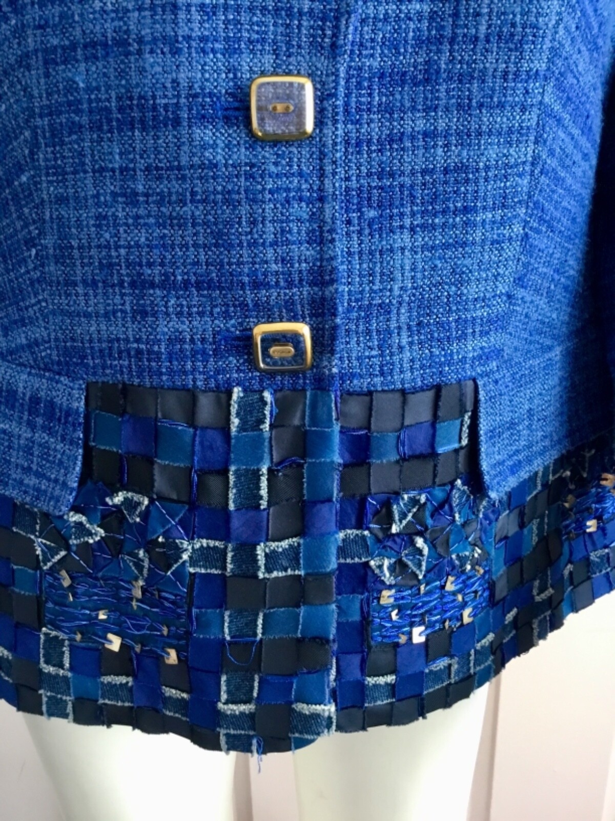 New ESCADA Pacific Blue Silk Blend Jacket, Woven Denim Ribbon Accents US 10