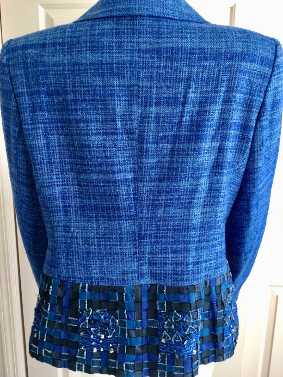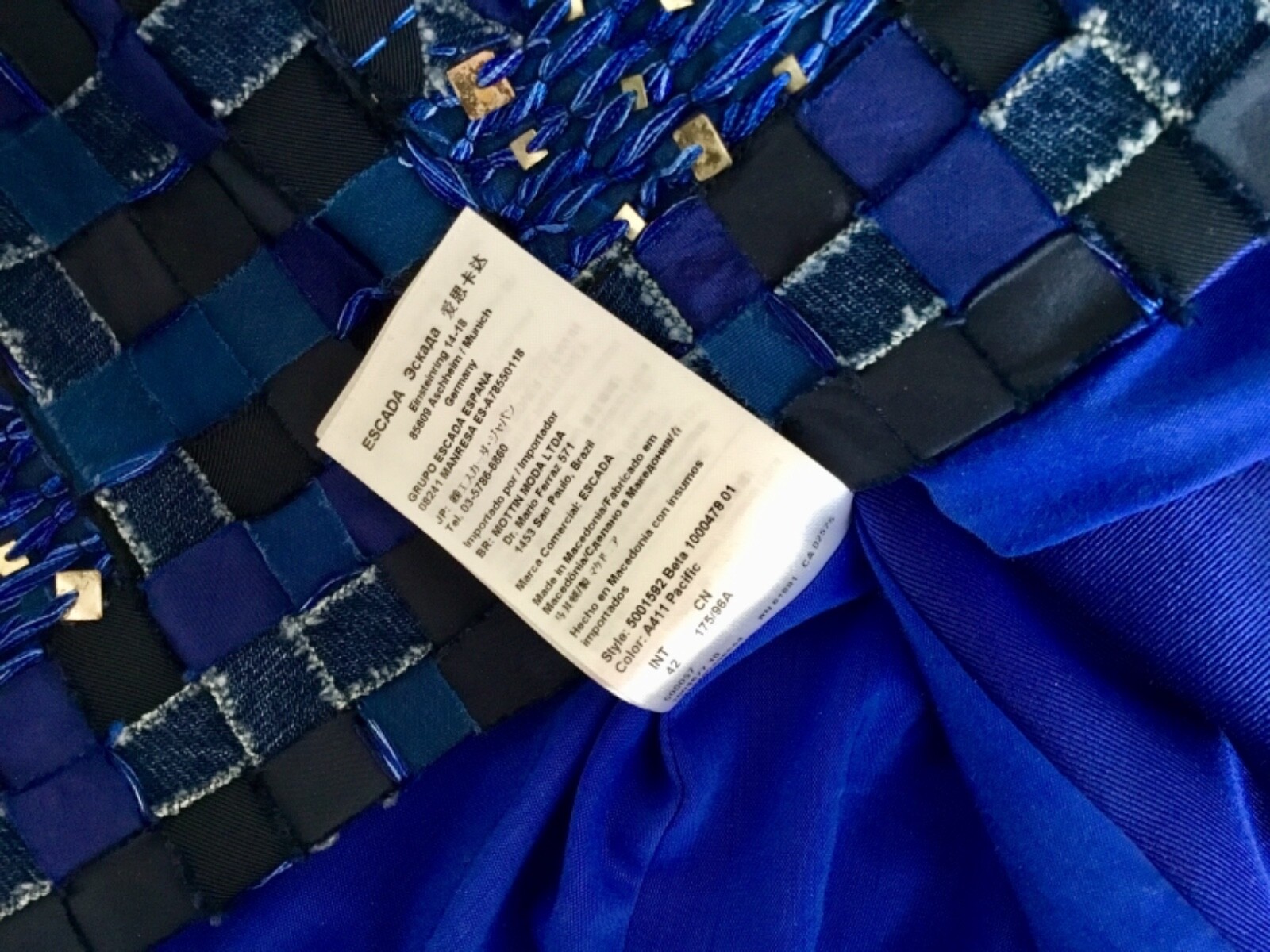 как выглядит New ESCADA Pacific Blue Silk Blend Jacket, Woven Denim Ribbon Accents US 10 фото