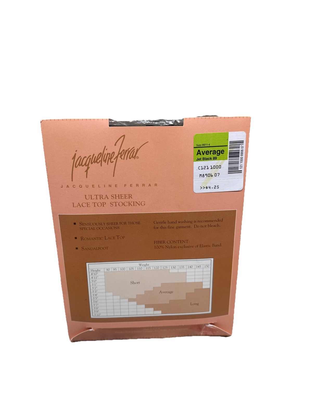 JACQUELINE FERRAR ULTRA SHEER LACE TOP STOCKING AVERAGE JET BLACK