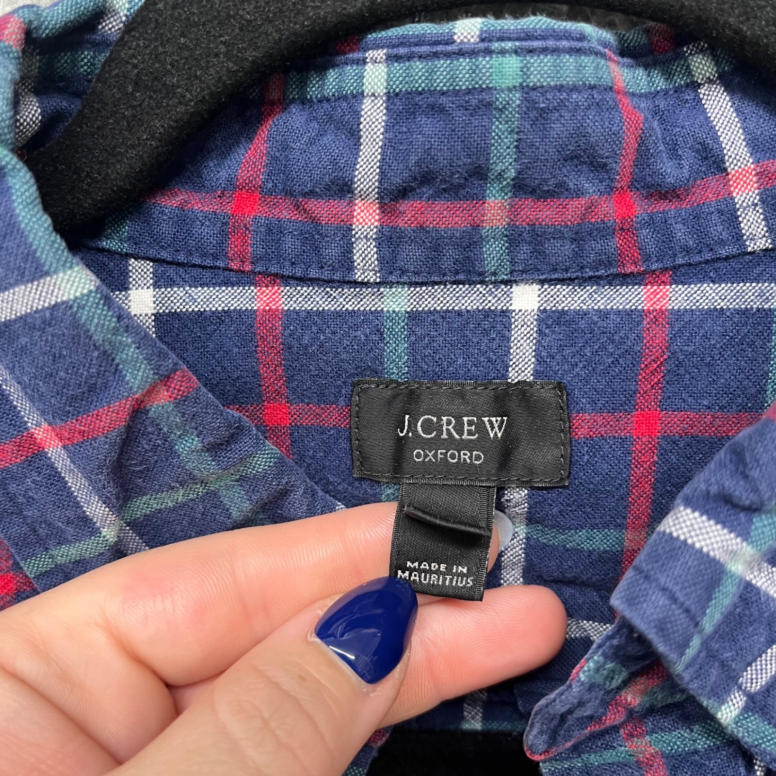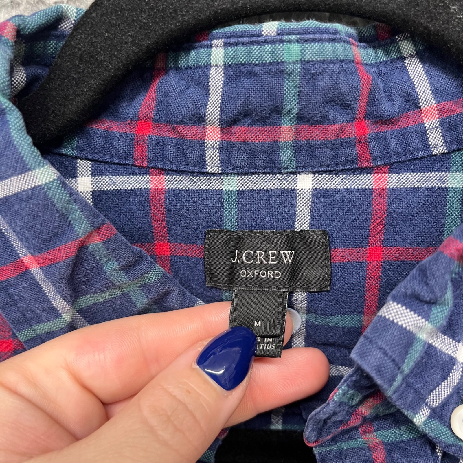 как выглядит J Crew Shirt Mens M Blue Plaid Oxford Cotton Preppy Long Sleeve Button Down фото