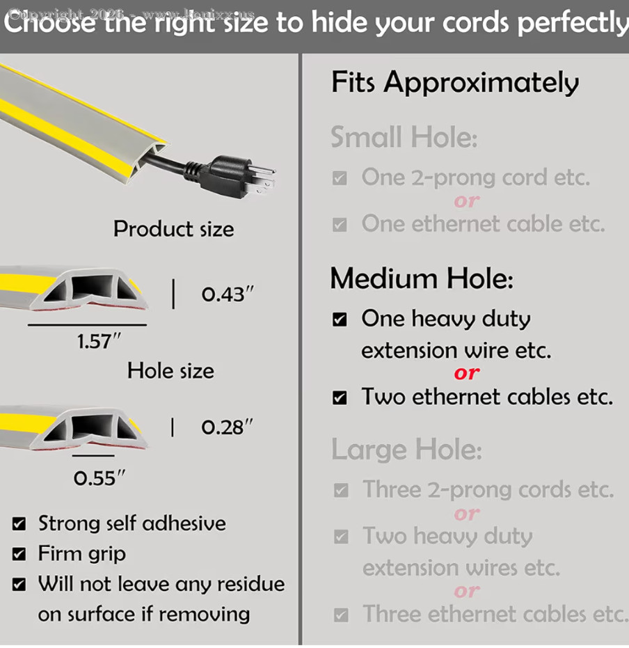 Cord Cover Floor Cable Protector - Strong Self Adhesive Floor Cord Covers 6ft Gr