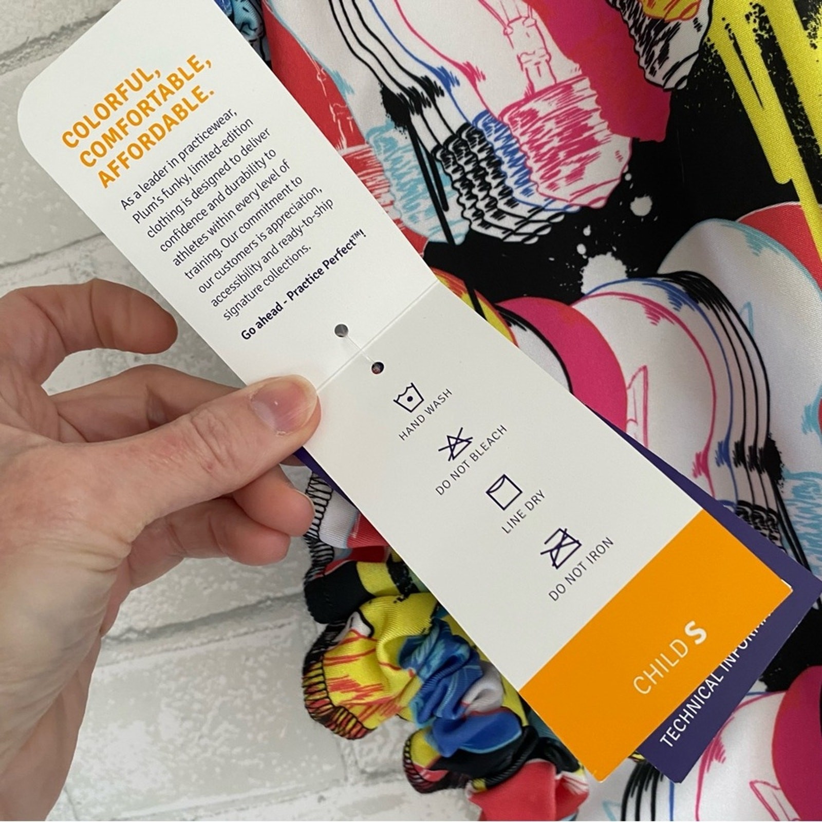 NEW Plum Practicewear Gymnastics Blk Print Leotard Leo Scrunchie Child Small