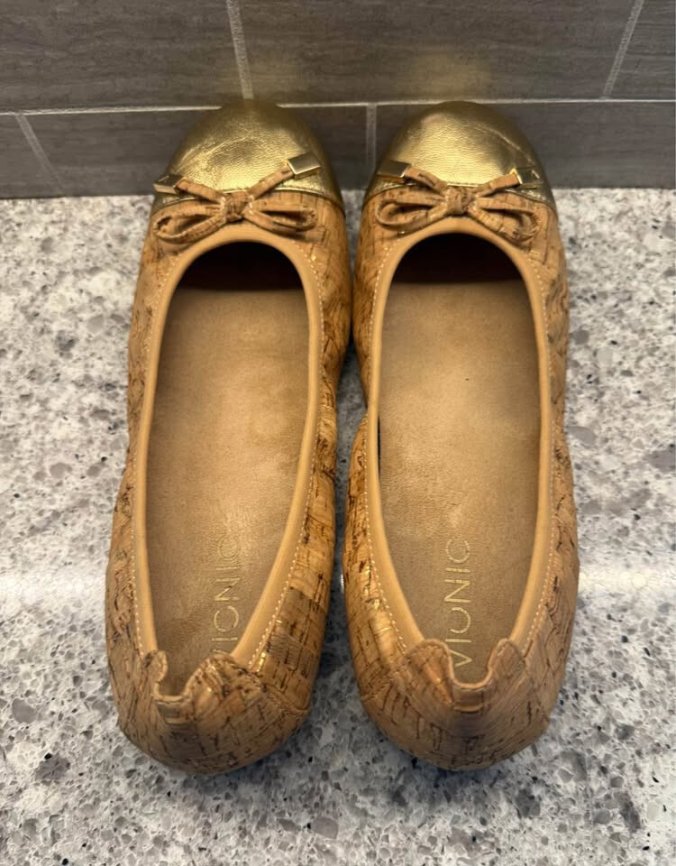 Women s Vionic Cork Gold Cap Toe Klara Ballet Flats with Arch Support-Size 7.5