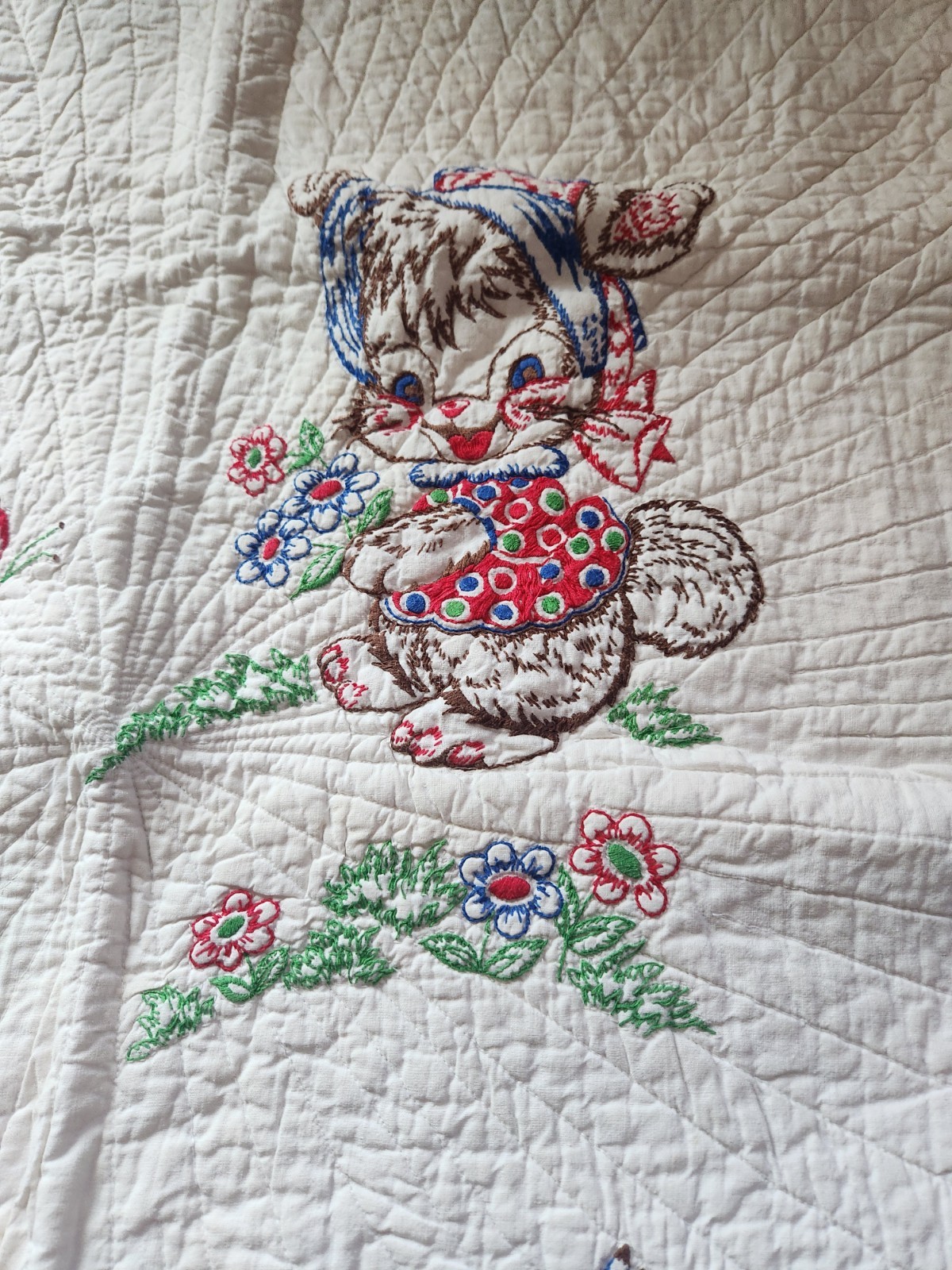 как выглядит Vintage Embroidered Baby Crib Blanket/Quilt Clean No Damage Primary Colors фото
