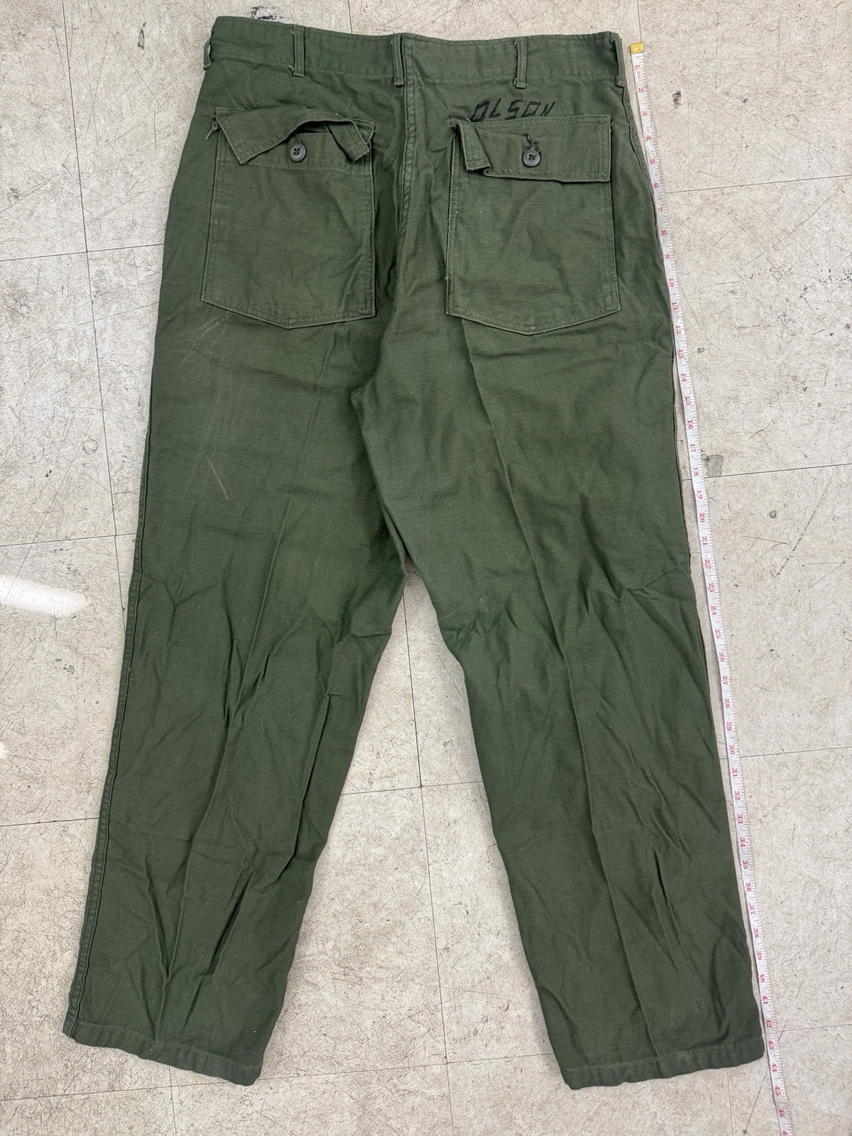 36x31 US Army OG107 Trousers Baker Pants 60s Vtg Zip Fly Large Tag Sz 38x33