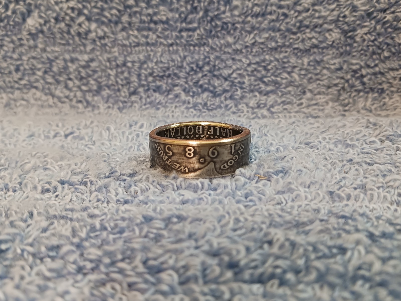 1985 Kennedy Half Dollars size 11-1/2 coin ring handmade mixed metals A