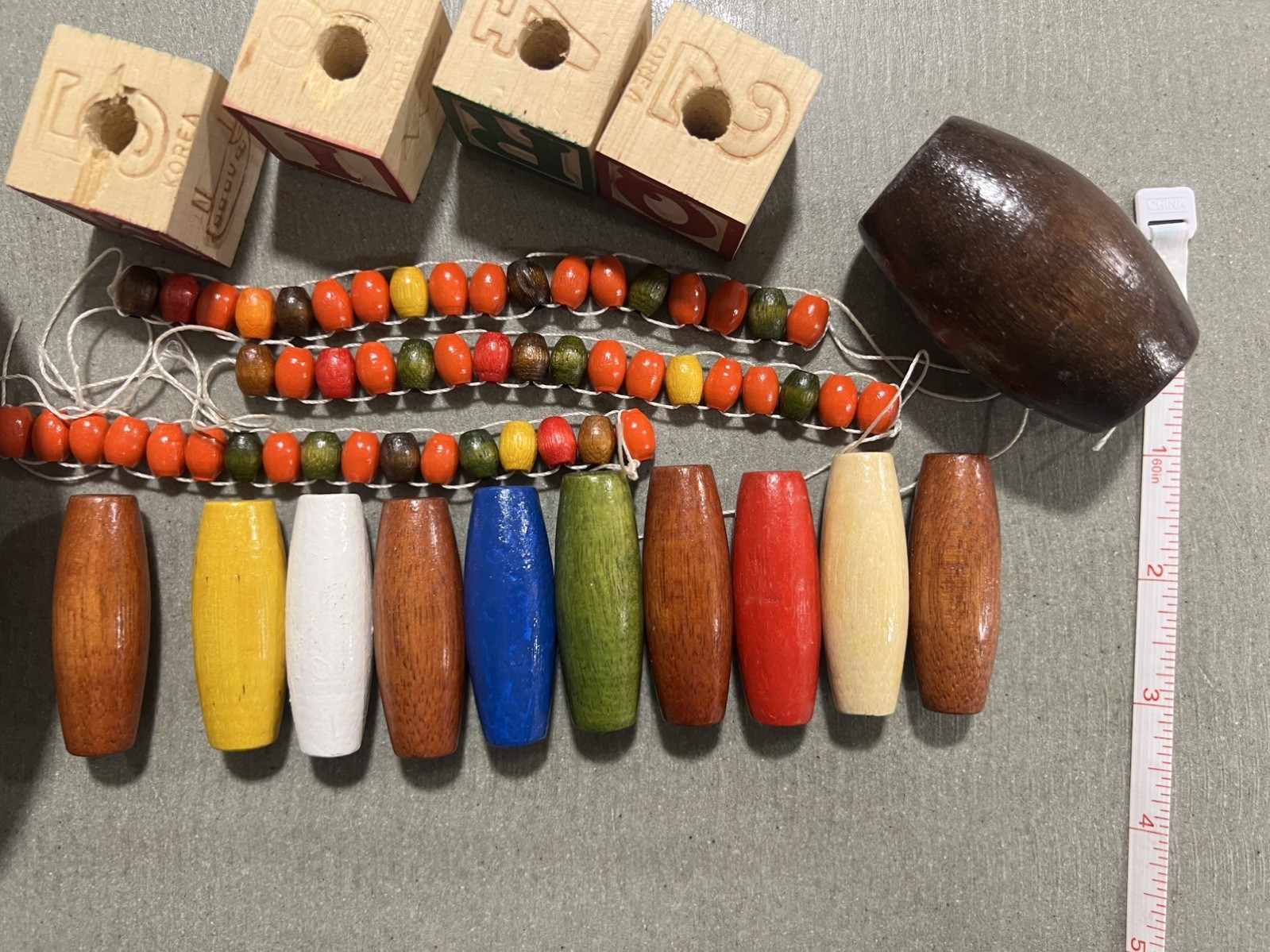 Vintage Macrame Jewelry Crafting Wood Bead Lot 300 Bead round oblong alphabet