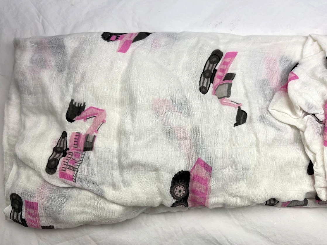Newcastle Pink Digger Bamboo Baby Crib Sheet Truck Construction Standard Fitted