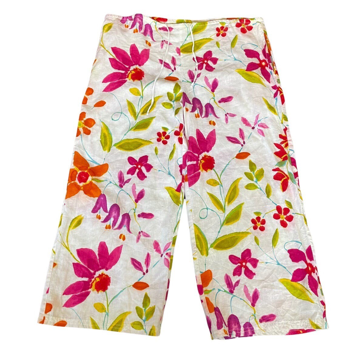 Carole Little Floral Pants Size 8 Wide Leg Ankle Cropped Colorful Artsy Hippie