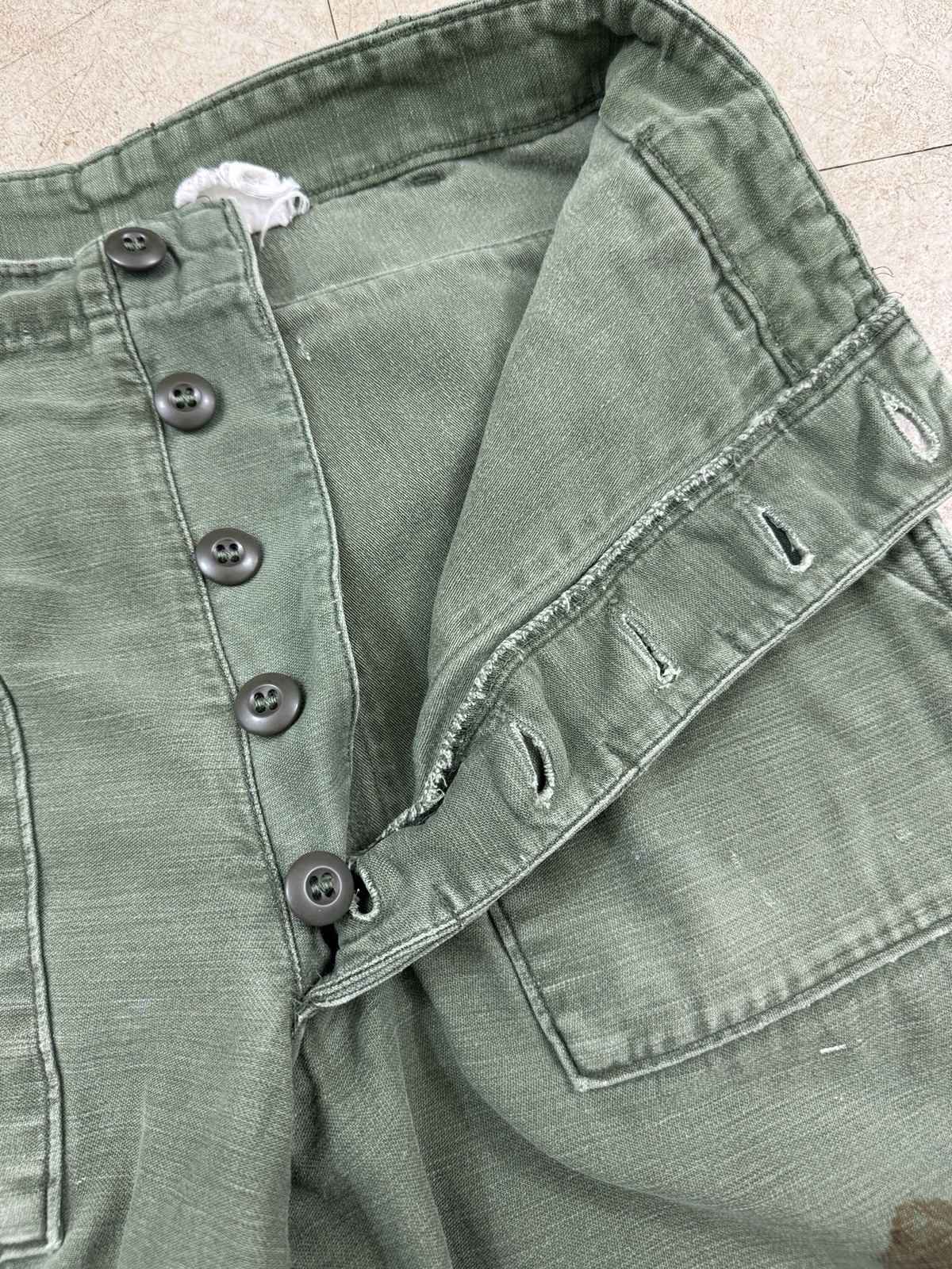 US Army OG107 Utility Trousers 60s Vtg Baker Pants Cotton Distressed Faded 27x28